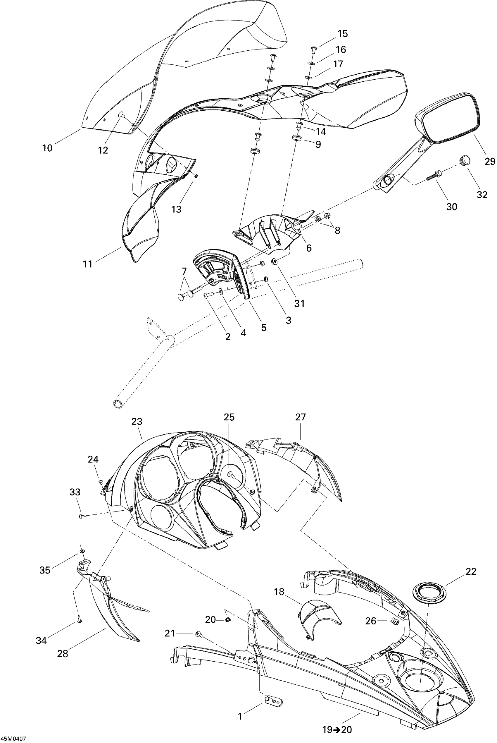 Ski-Doo GSX 600 HO SDI, 2004 Windshield And Console Diagram