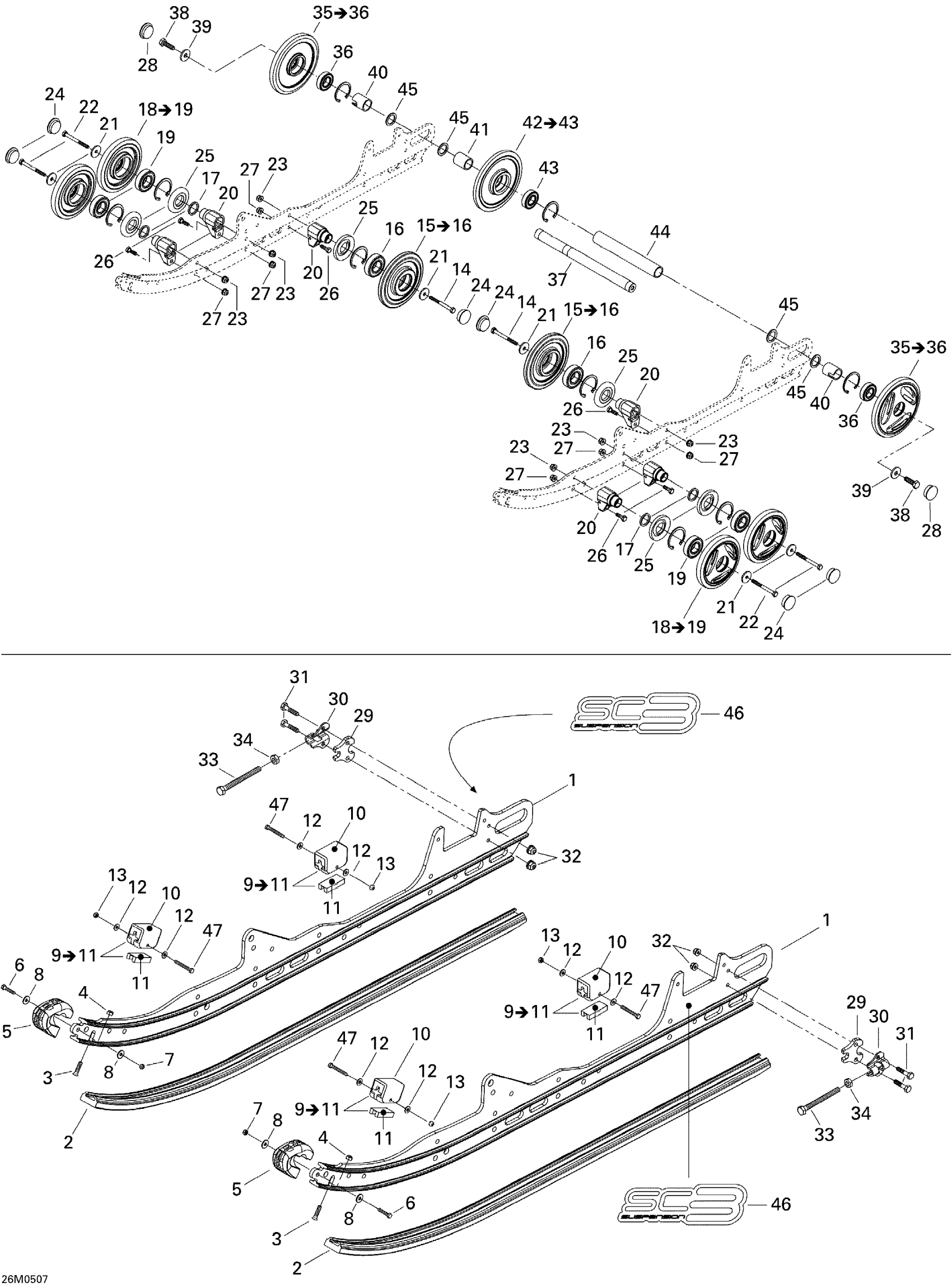 Ski-Doo GSX 600 HO SDI, 2005 Rear Suspension Diagram