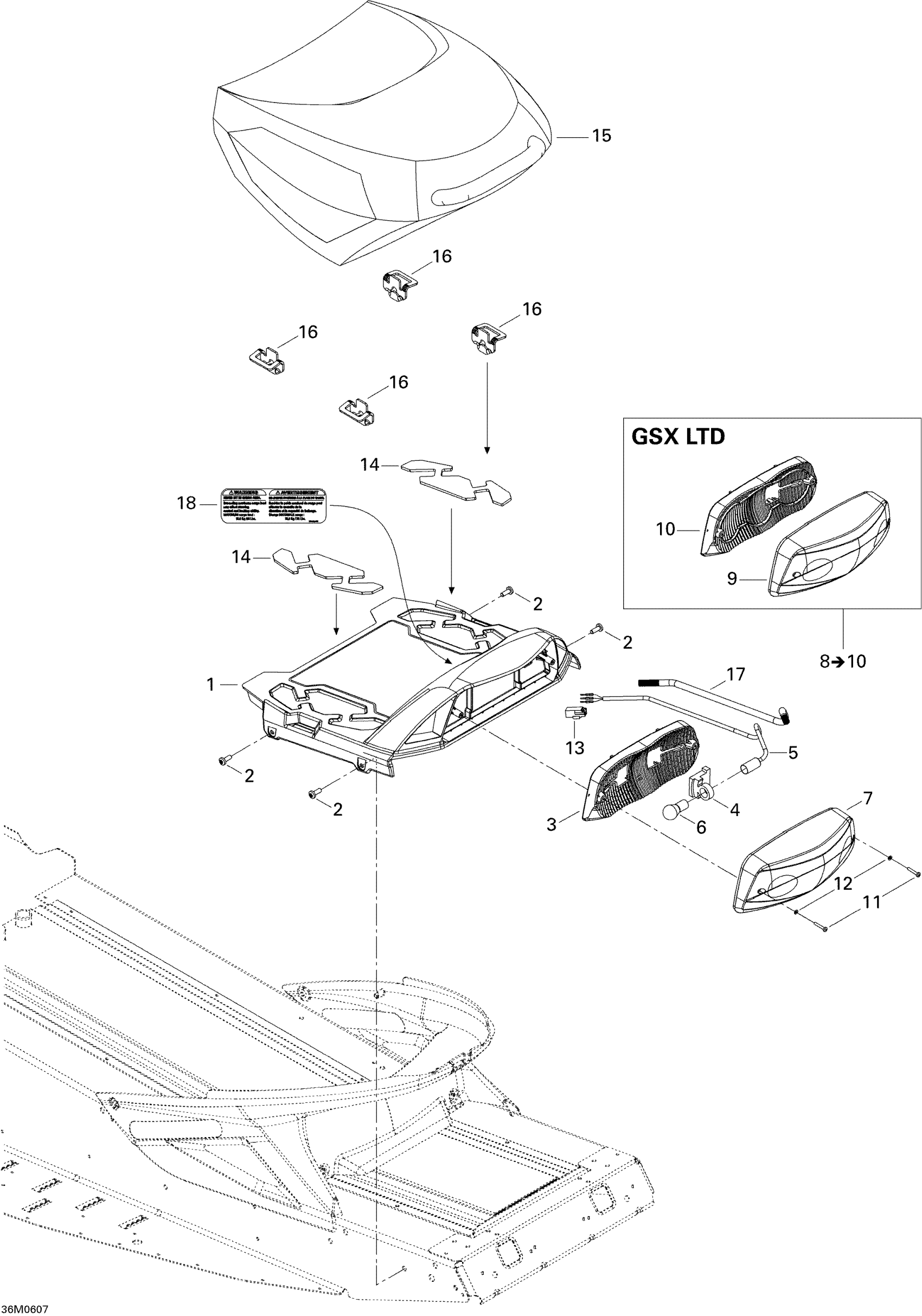 Ski-Doo GSX 600 HO SDI, 2006 Luggage Rack Diagram