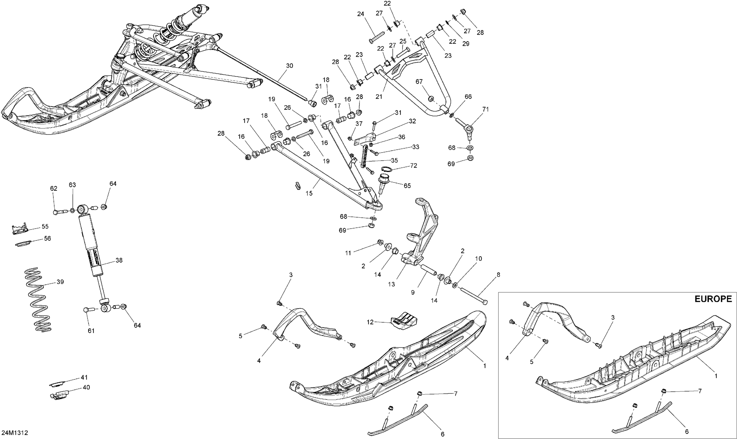 Ski-Doo GSX LE 600HOE XP, 2013 Front Suspension And Ski Diagram