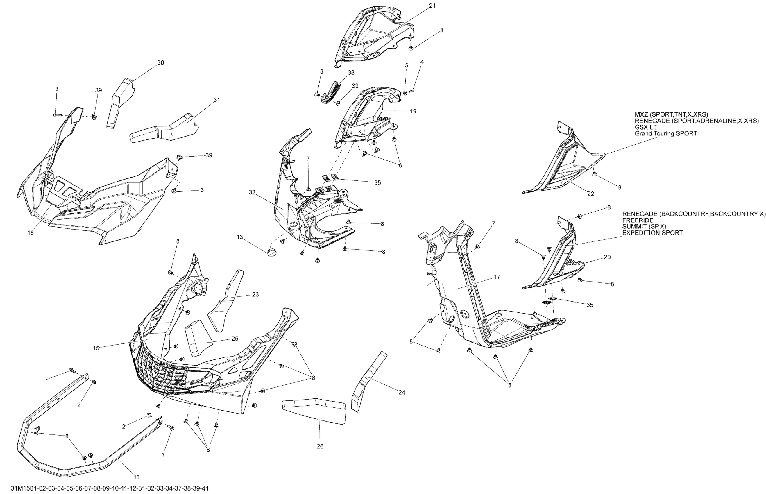 Ski-Doo GSX LE 600HOETEC XS120, 2015 Bottom Pan _31M1505 Diagram
