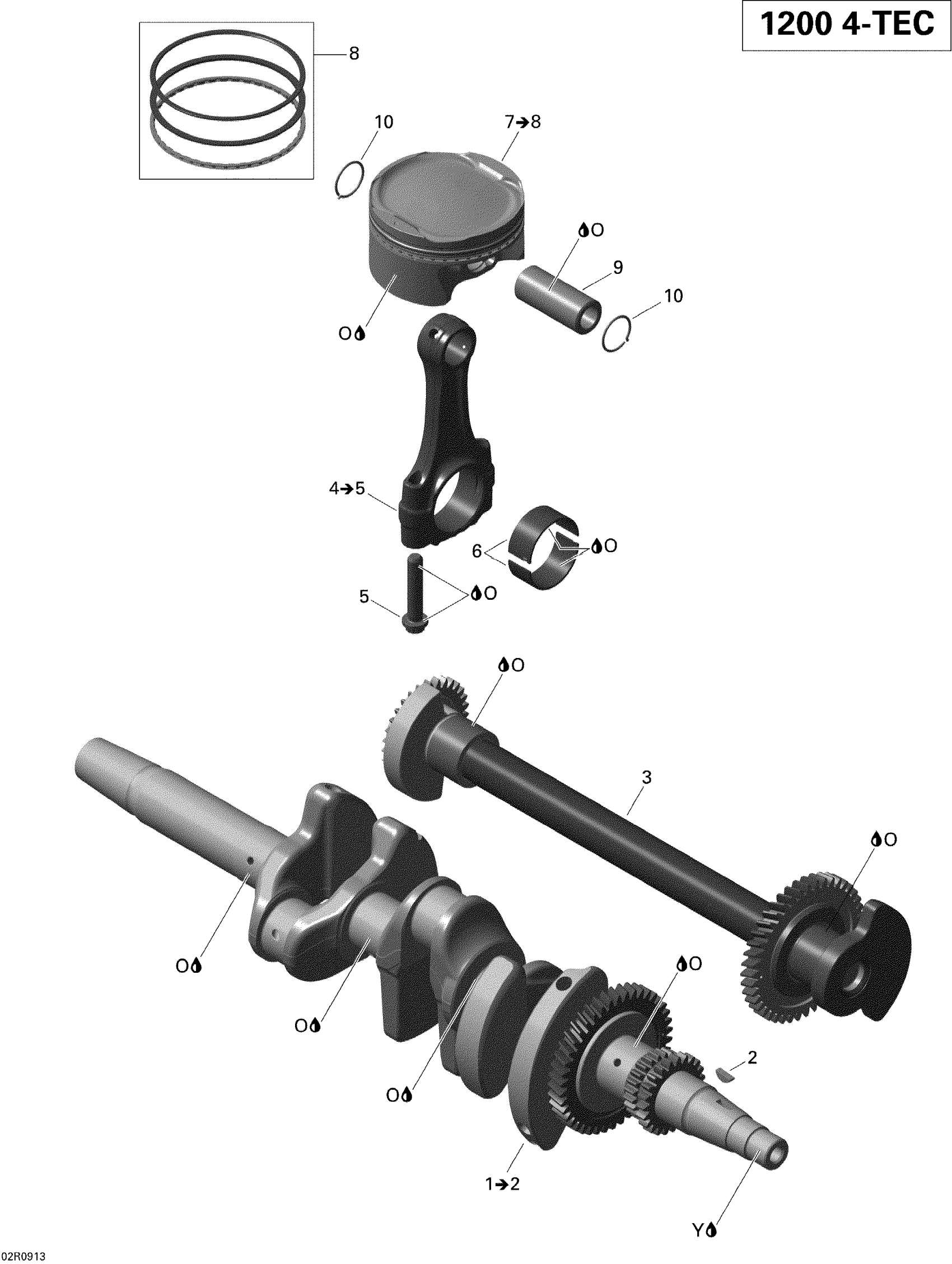 Ski-Doo GSX Limited 1200 4-TEC, 2009 Crankshaft, Pistons And Balance Shaft Diagram