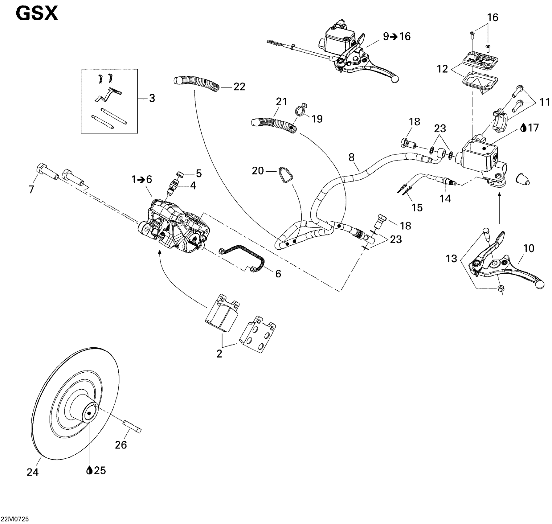 Ski-Doo GSX LTD 600 HO SDI, 2007 Hydraulic Brakes Diagram