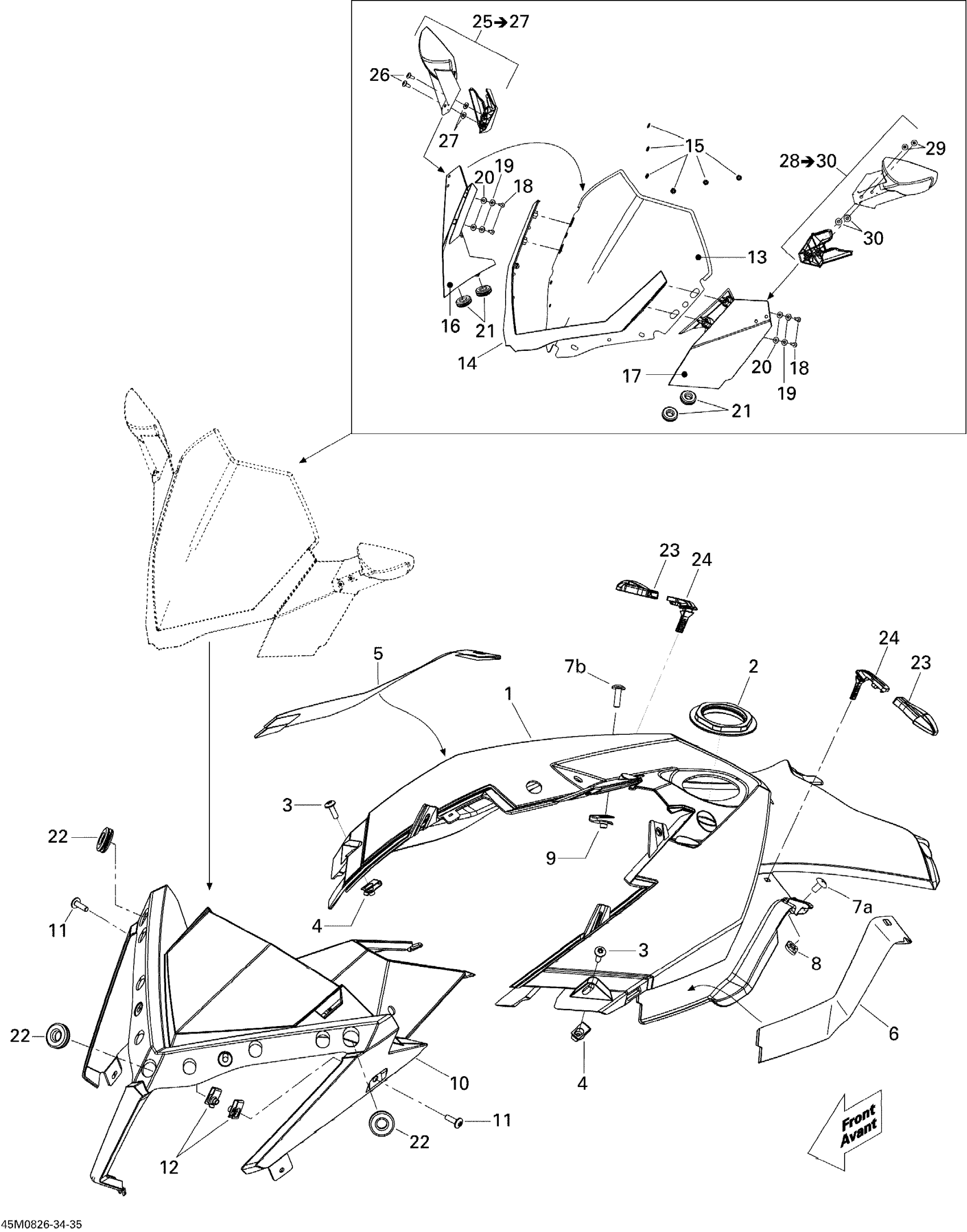Ski-Doo GSX LTD 600 HO SDI, 2008 Windshield And Console Diagram