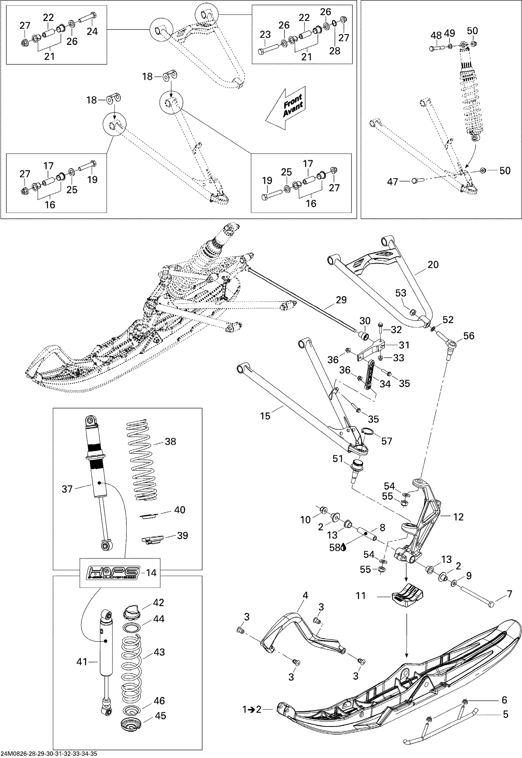 Ski-Doo GSX LTD TOURING 600 HO SDI, 2008 Front Suspension And Ski Diagram
