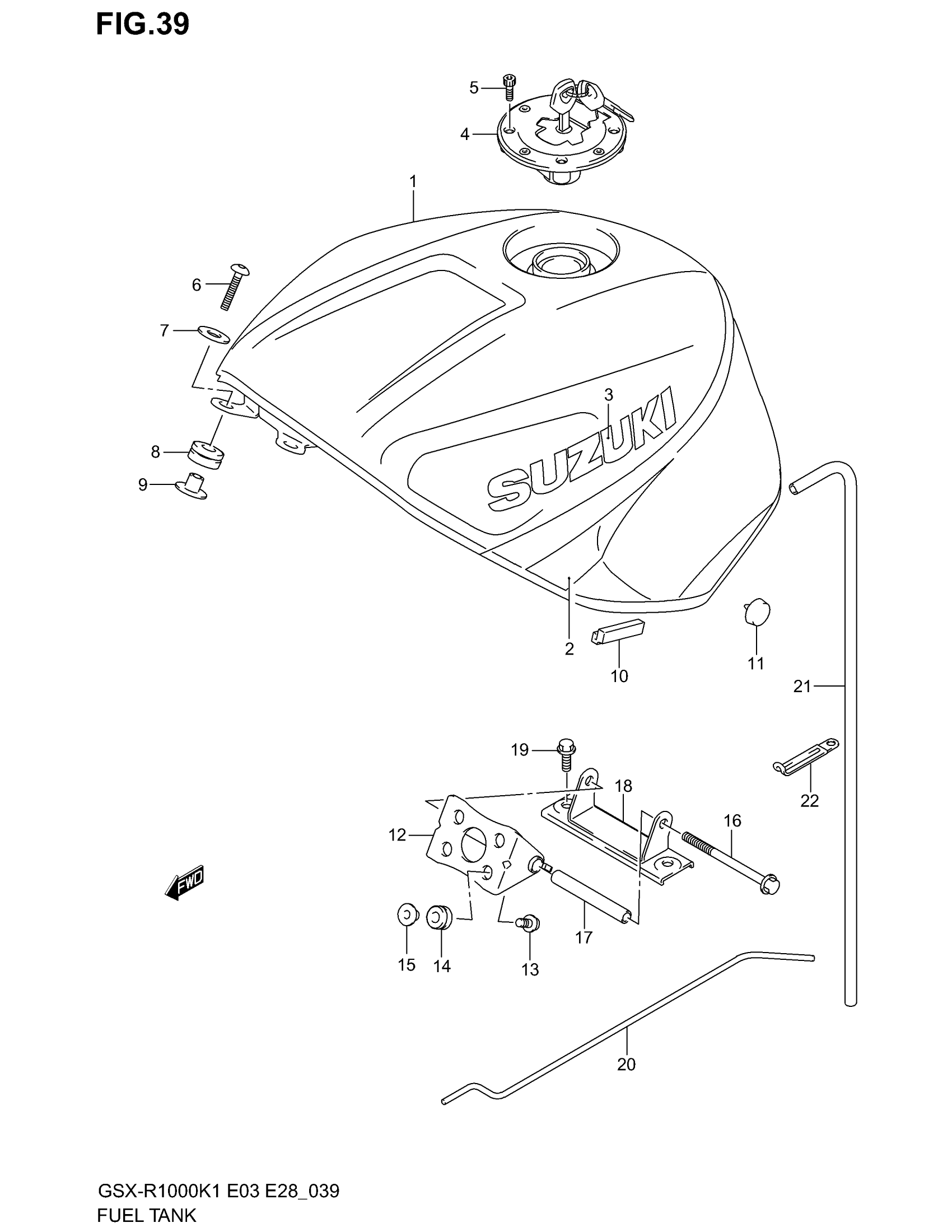 Suzuki GSX-R1000 (2002) FUEL TANK (MODEL K1) Diagram