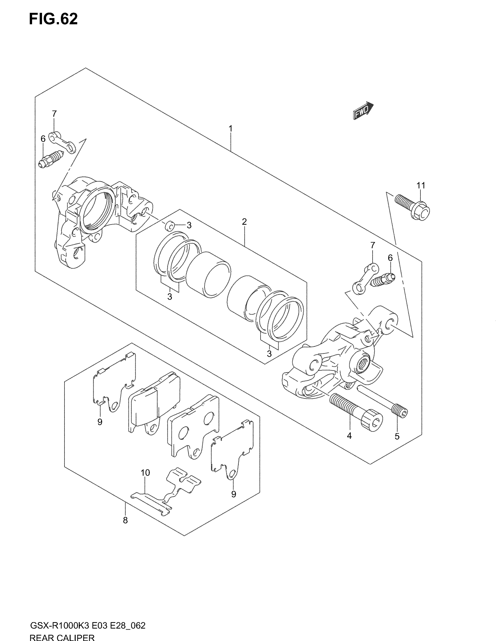 Suzuki GSX-R1000 (2004) REAR CALIPER Diagram
