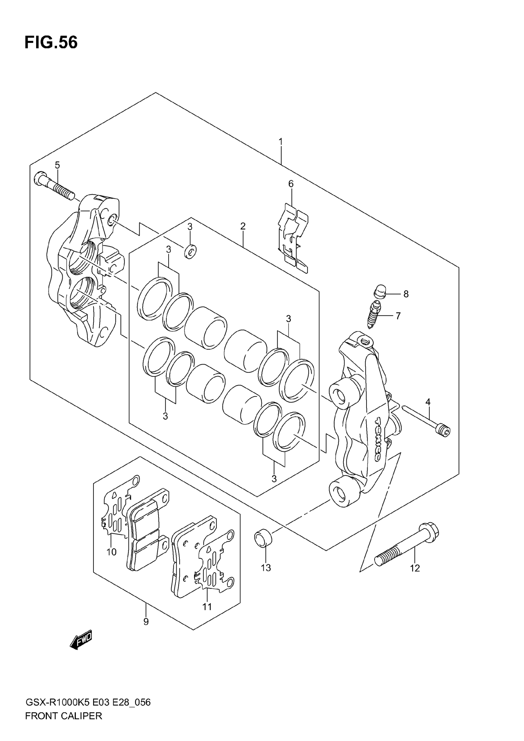 Suzuki GSX-R1000 (2006) FRONT CALIPER Diagram