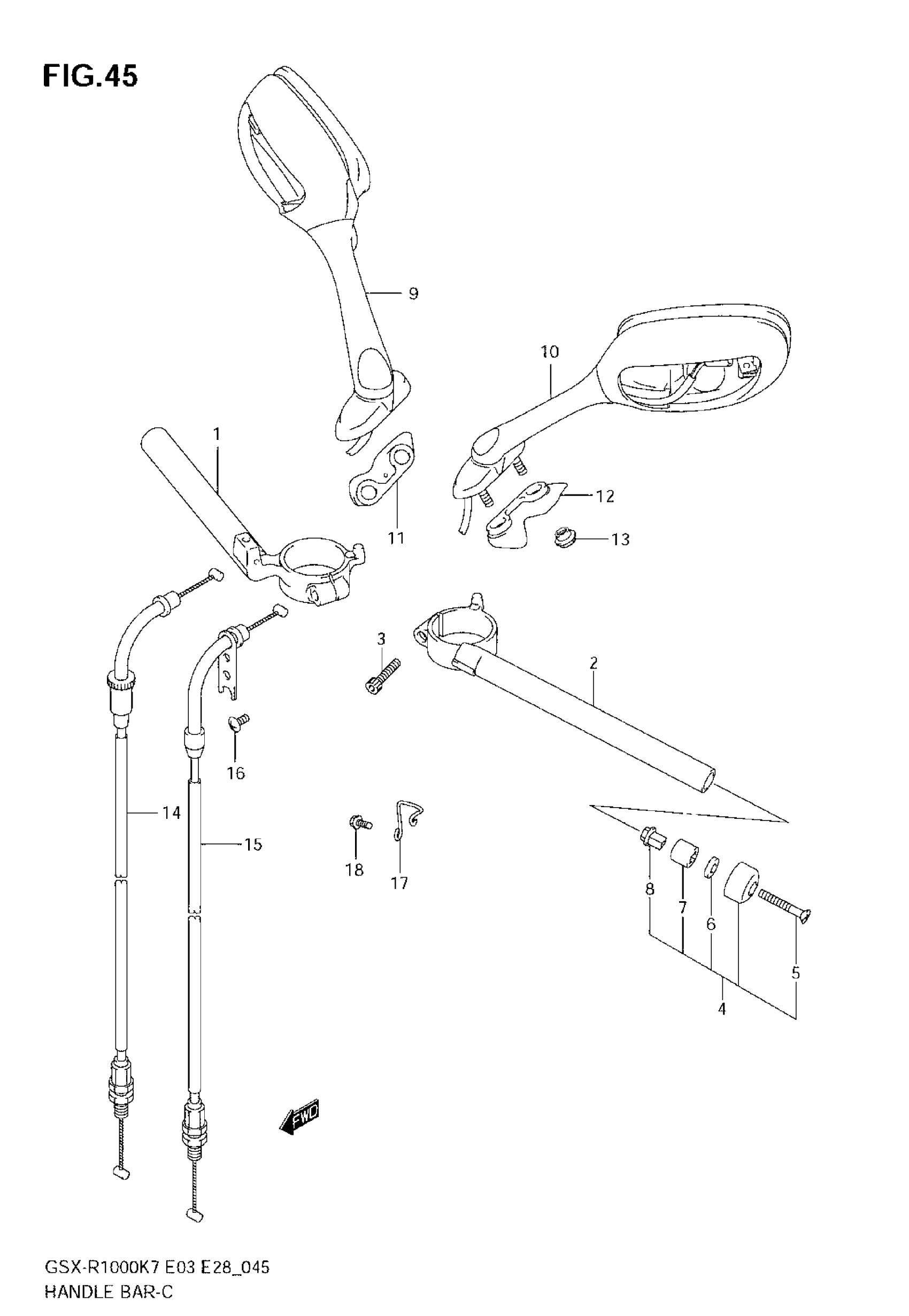 Suzuki GSX-R1000 (2008) HANDLEBAR Diagram