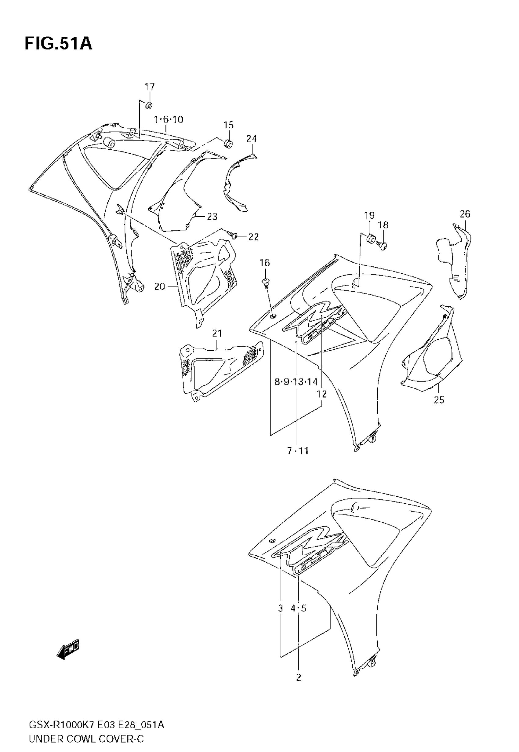Suzuki GSX-R1000 (2008) UNDER COWL COVER (MODEL K8) Diagram
