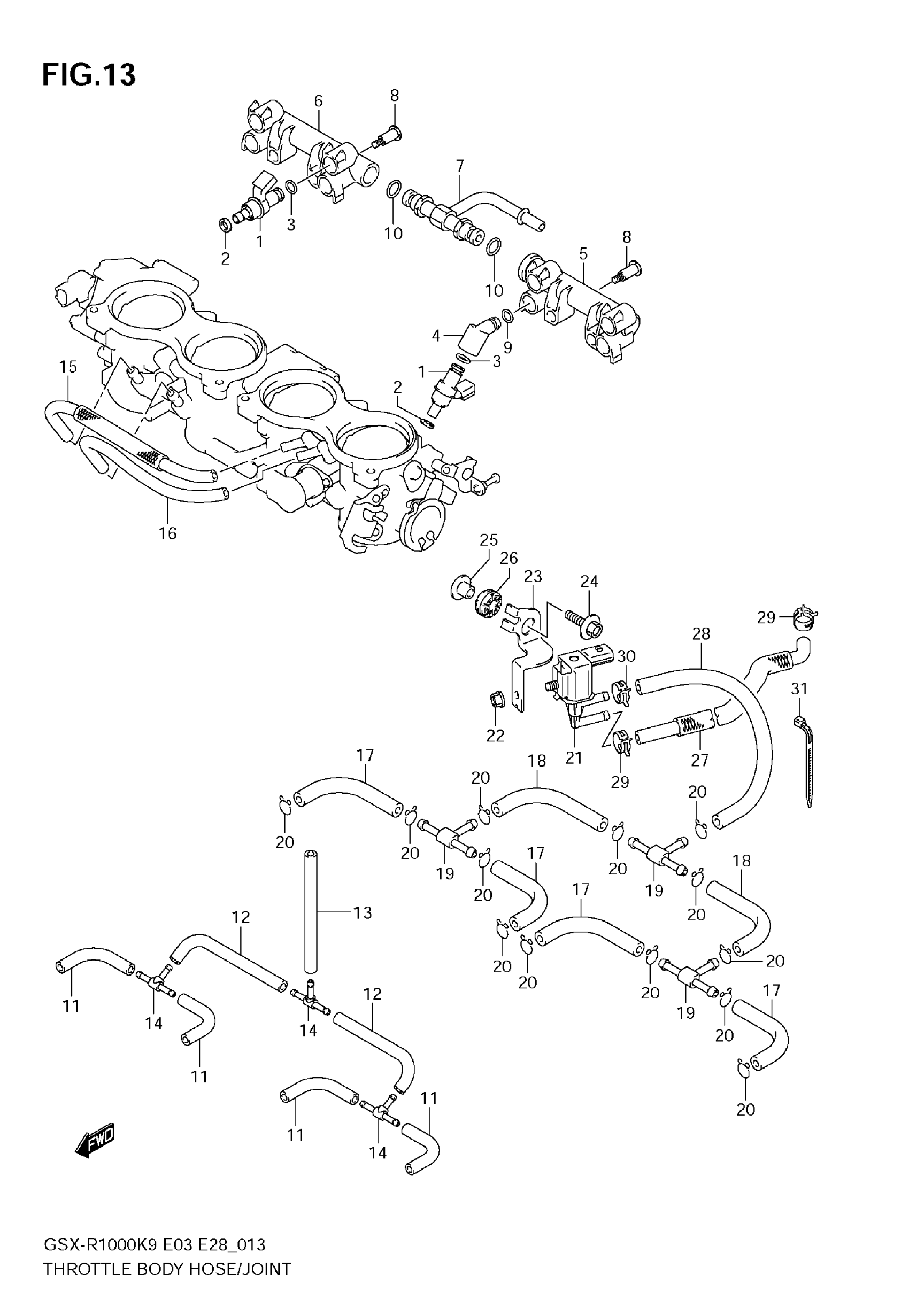 Suzuki GSX-R1000 (2009) THROTTLE BODY HOSE/JOINT Diagram