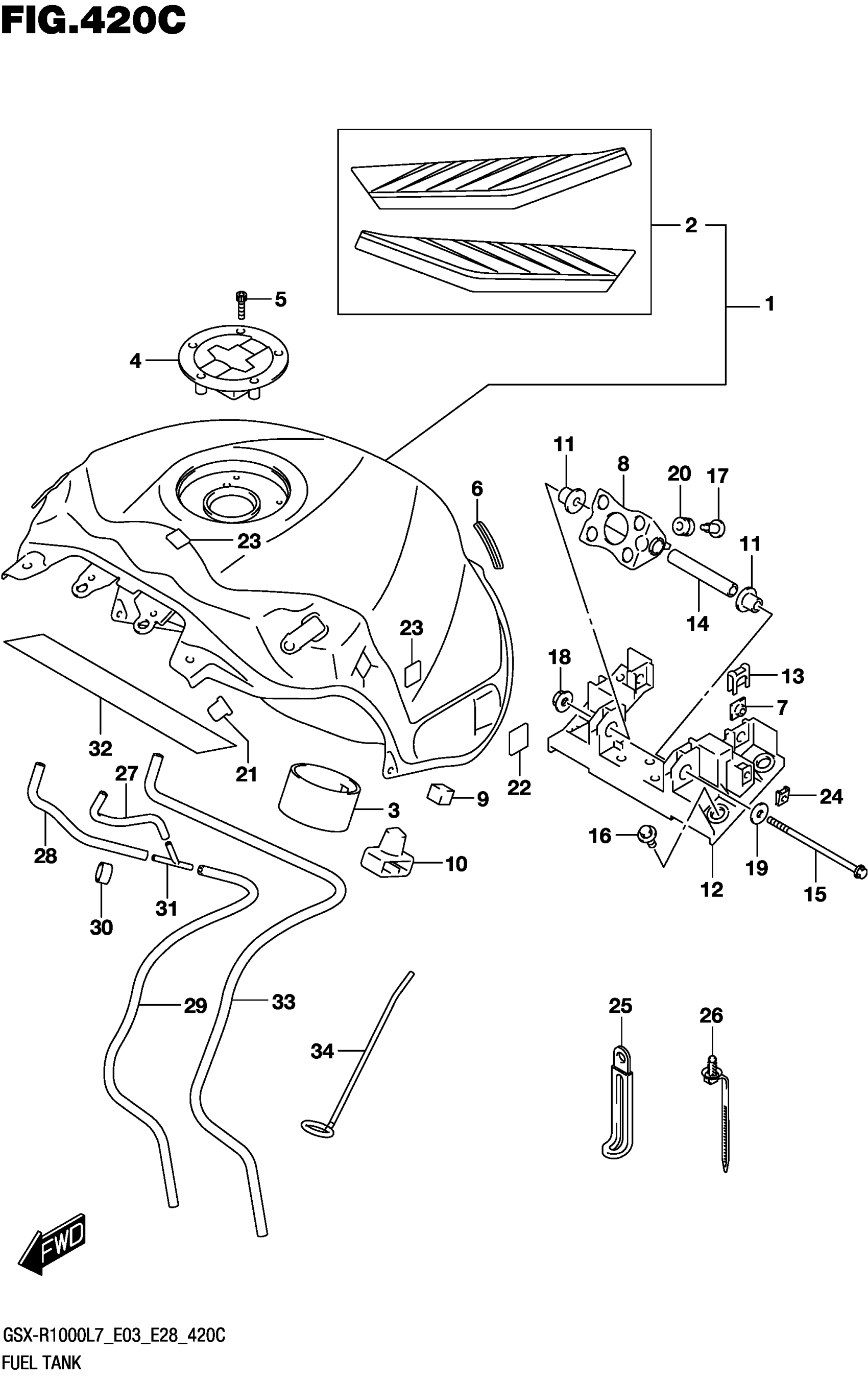 Suzuki GSX-R1000AL (2017) FUEL TANK (GSX-R1000L7 E28) (YSF) Diagram