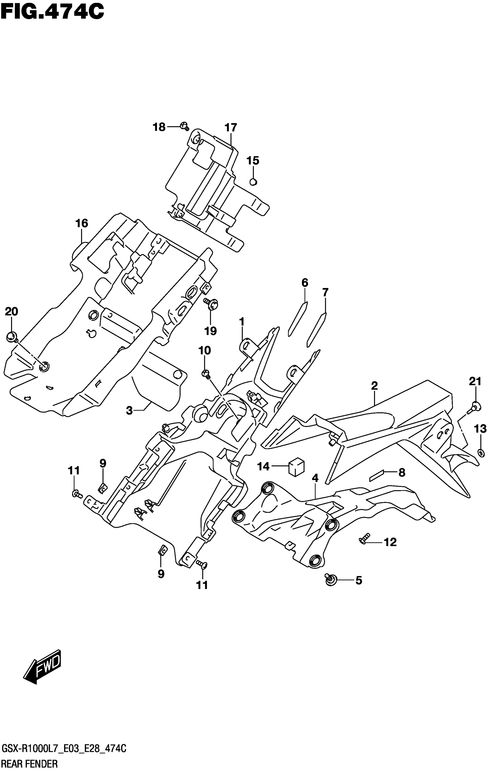 Suzuki GSX-R1000AL (2017) REAR FENDER (GSX-R1000L7 E33) Diagram
