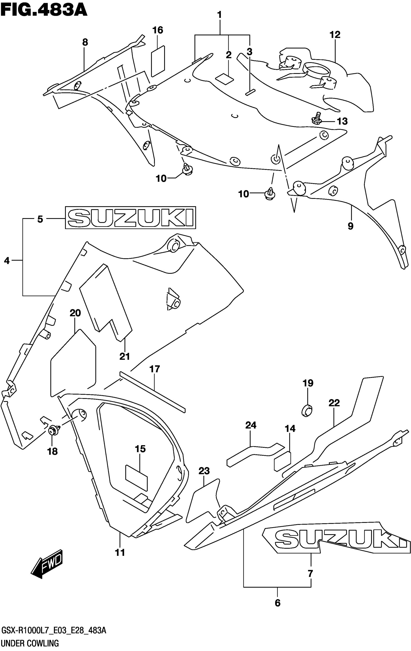 Suzuki GSX-R1000AL (2017) UNDER COWLING Diagram