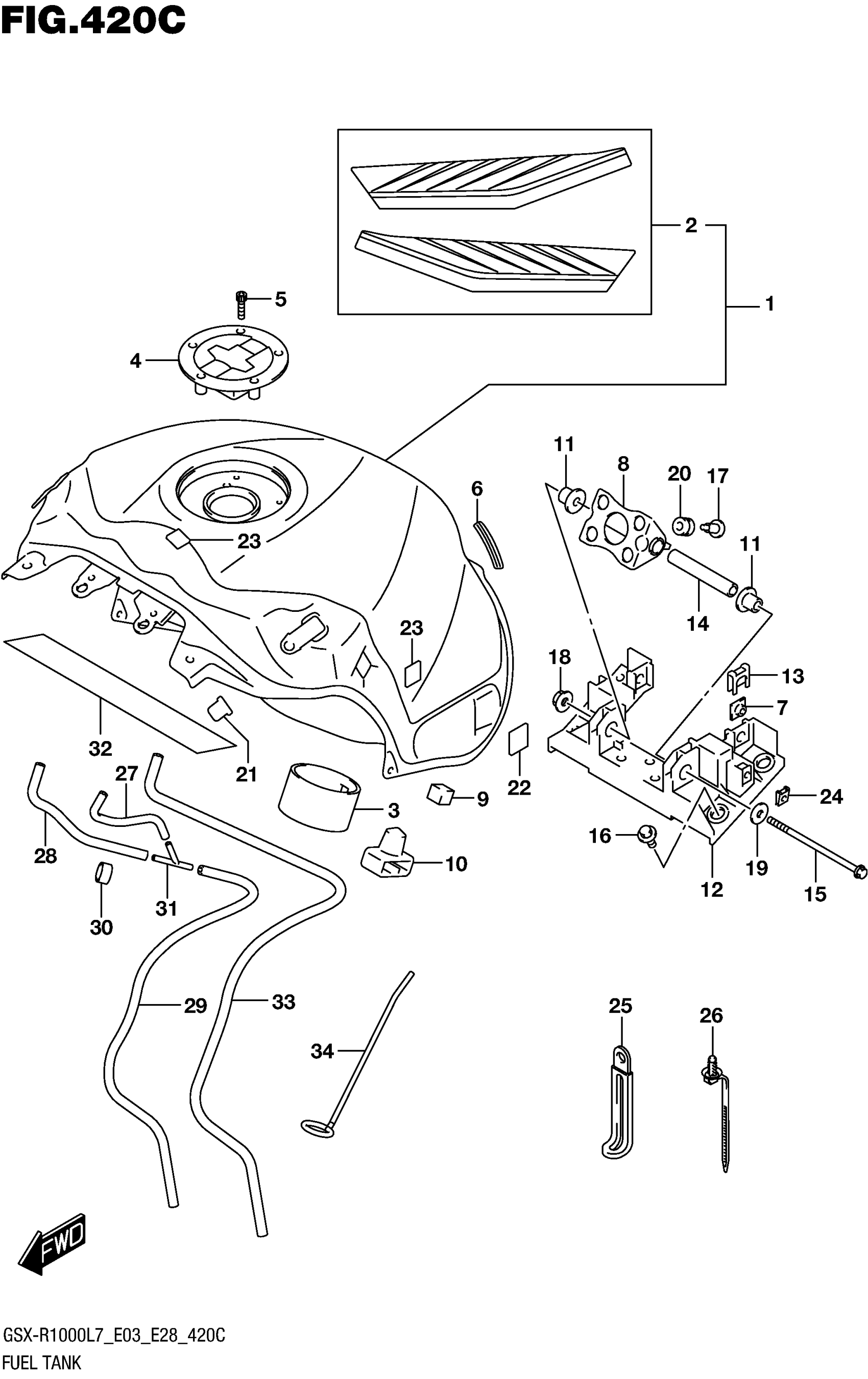 Suzuki GSX-R1000AL7 (2017) FUEL TANK (GSX-R1000L7 E28) (YSF) Diagram