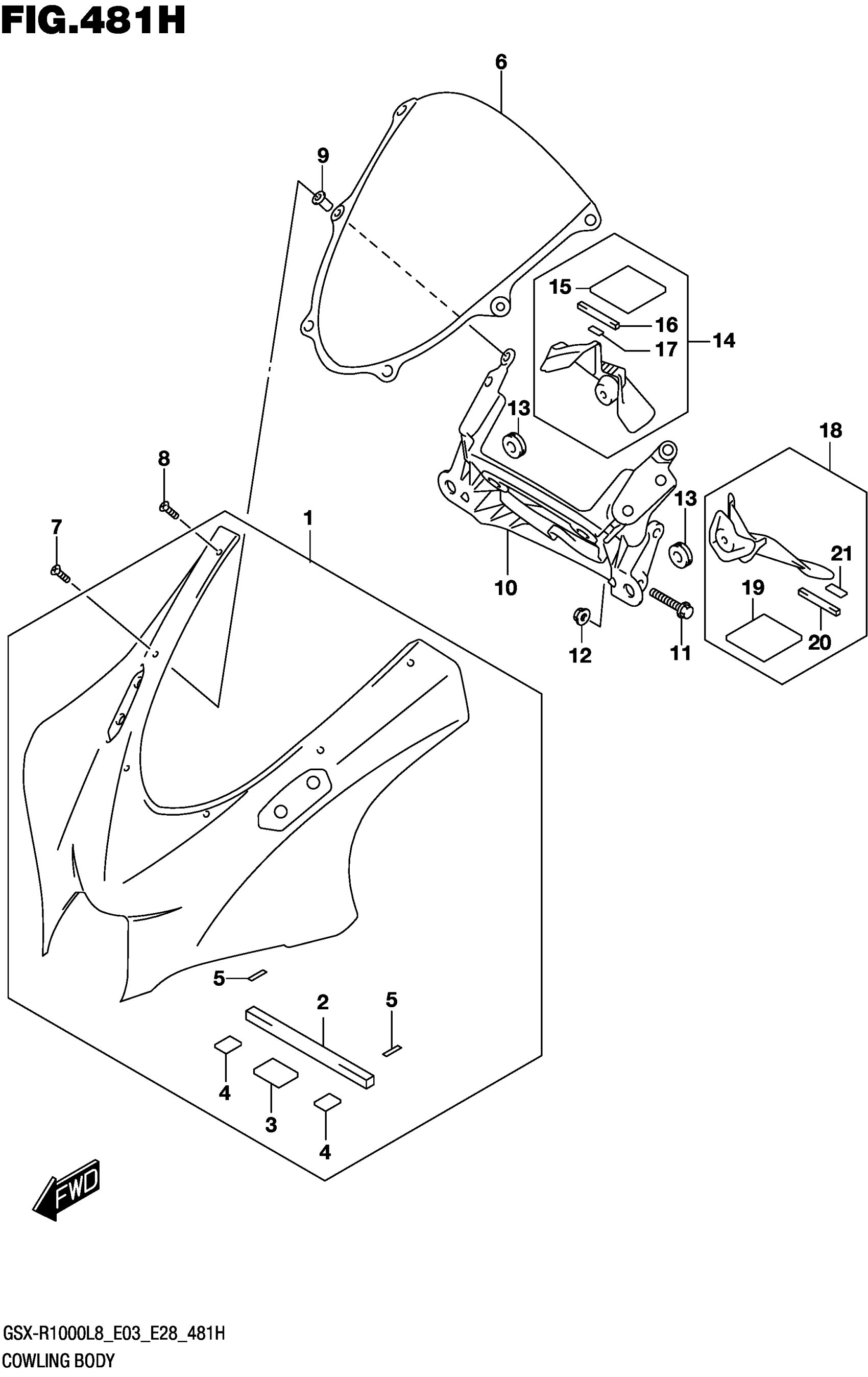 Suzuki GSX-R1000AL8 (2018) COWLING BODY (GSX-R1000AL8 E28) (FOR YKV) Diagram