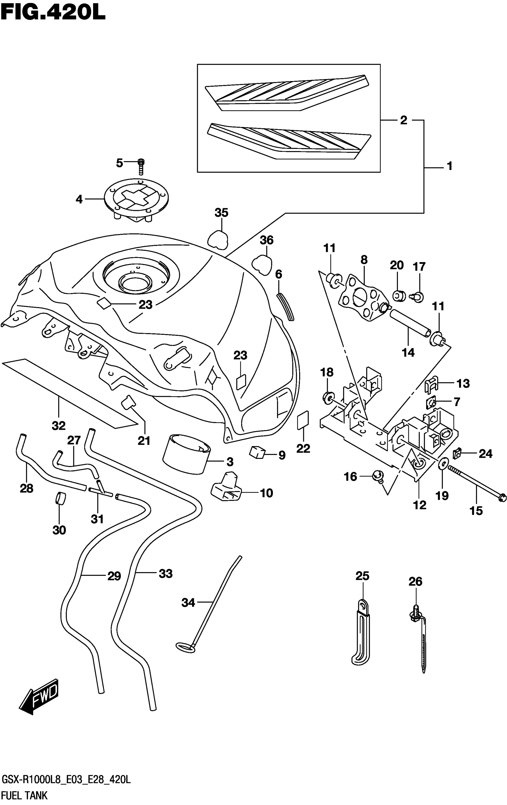 Suzuki GSX-R1000AL8 (2018) FUEL TANK (GSX-R1000RZL8 E03) Diagram