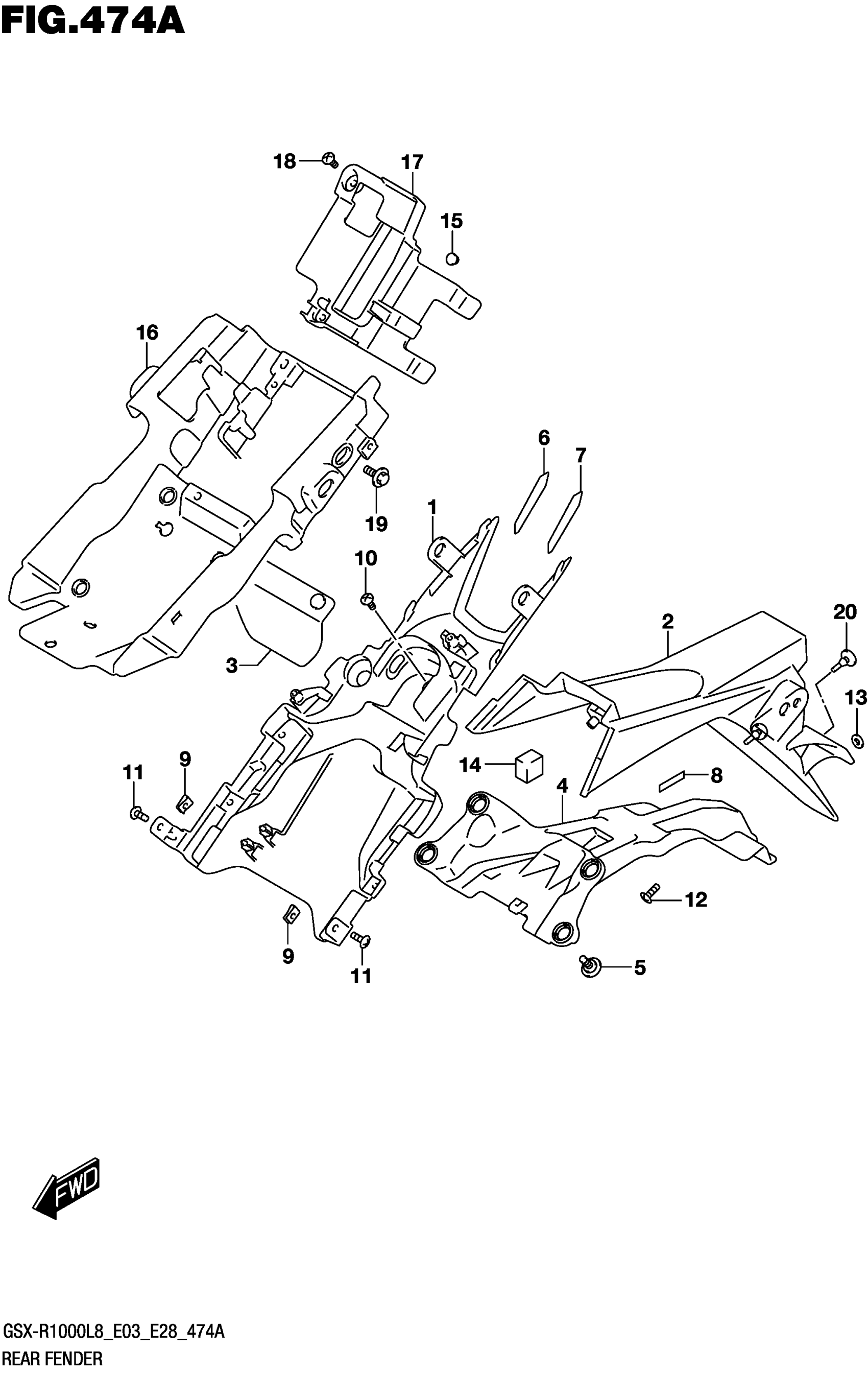 Suzuki GSX-R1000AL8 (2018) REAR FENDER Diagram