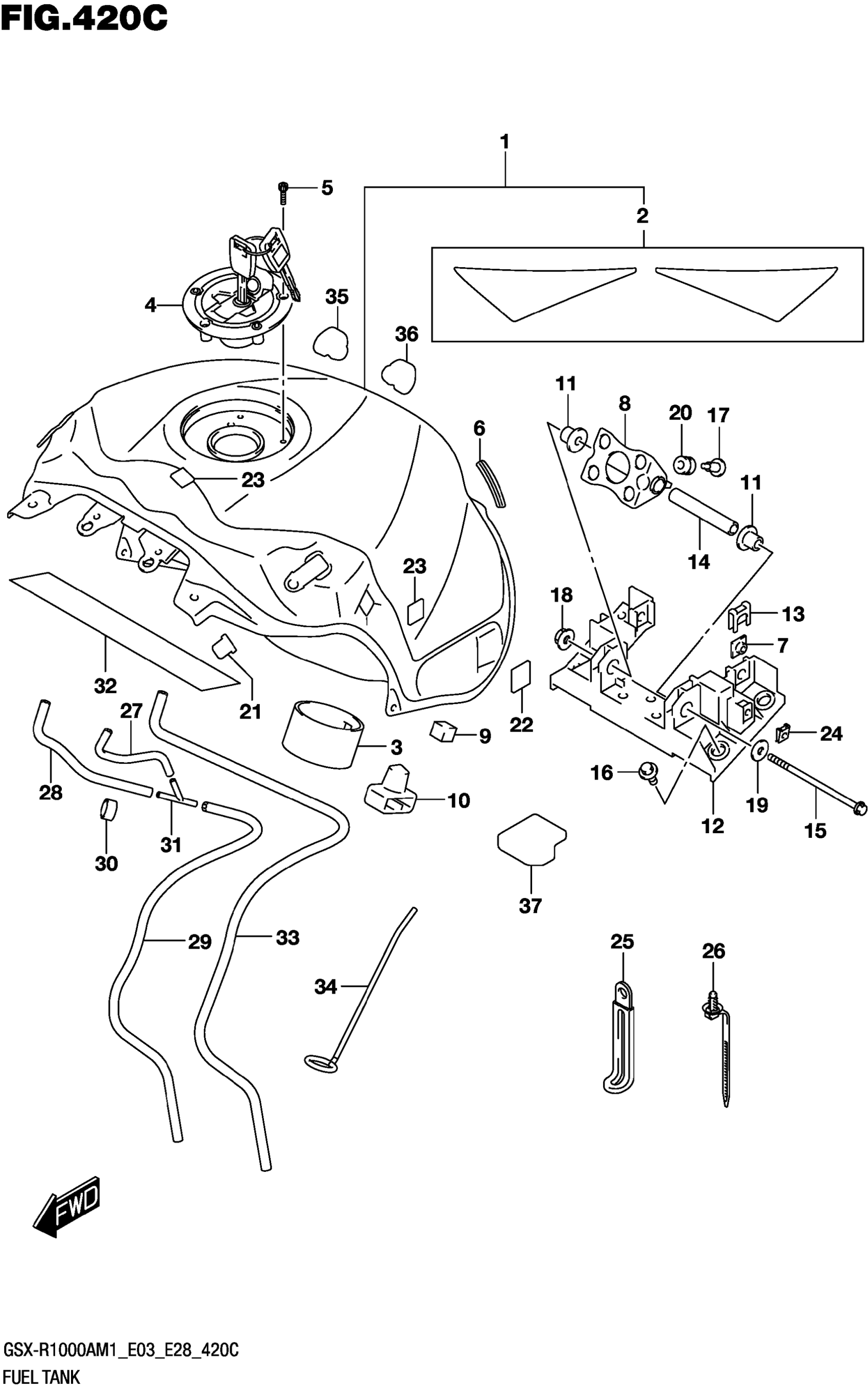 Suzuki GSX-R1000AM1 (2021) FUEL TANK (GSX-R1000ZA,GSX-R1000RZA:E03,E28) Diagram