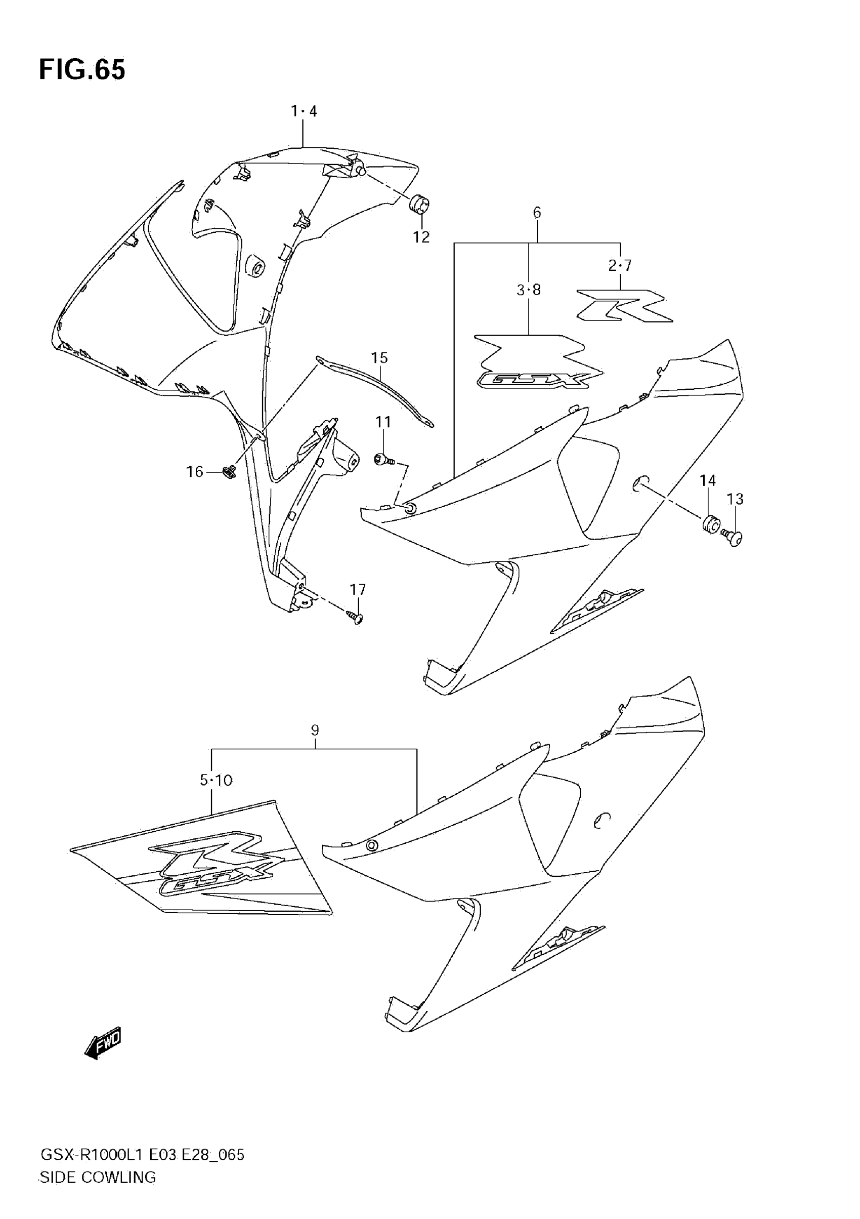 Suzuki GSX-R1000L1 (2011) SIDE COWLING Diagram