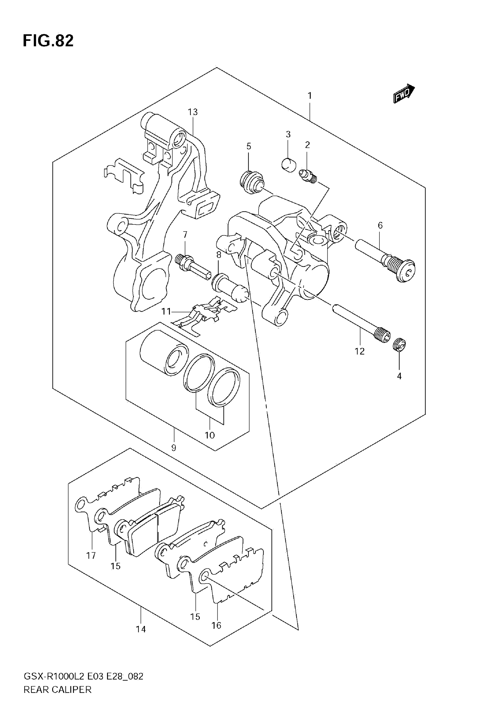 Suzuki GSX-R1000L2 (2012) REAR CALIPER Diagram