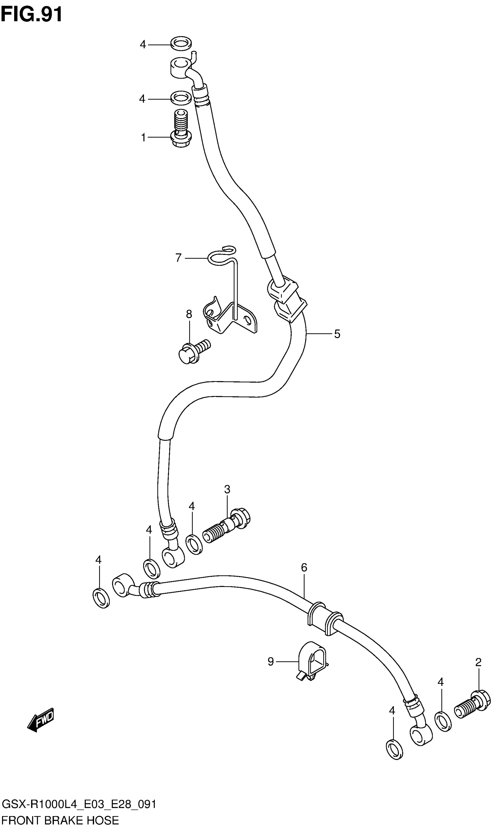 Suzuki GSX-R1000L4 (2014) FRONT BRAKE HOSE Diagram