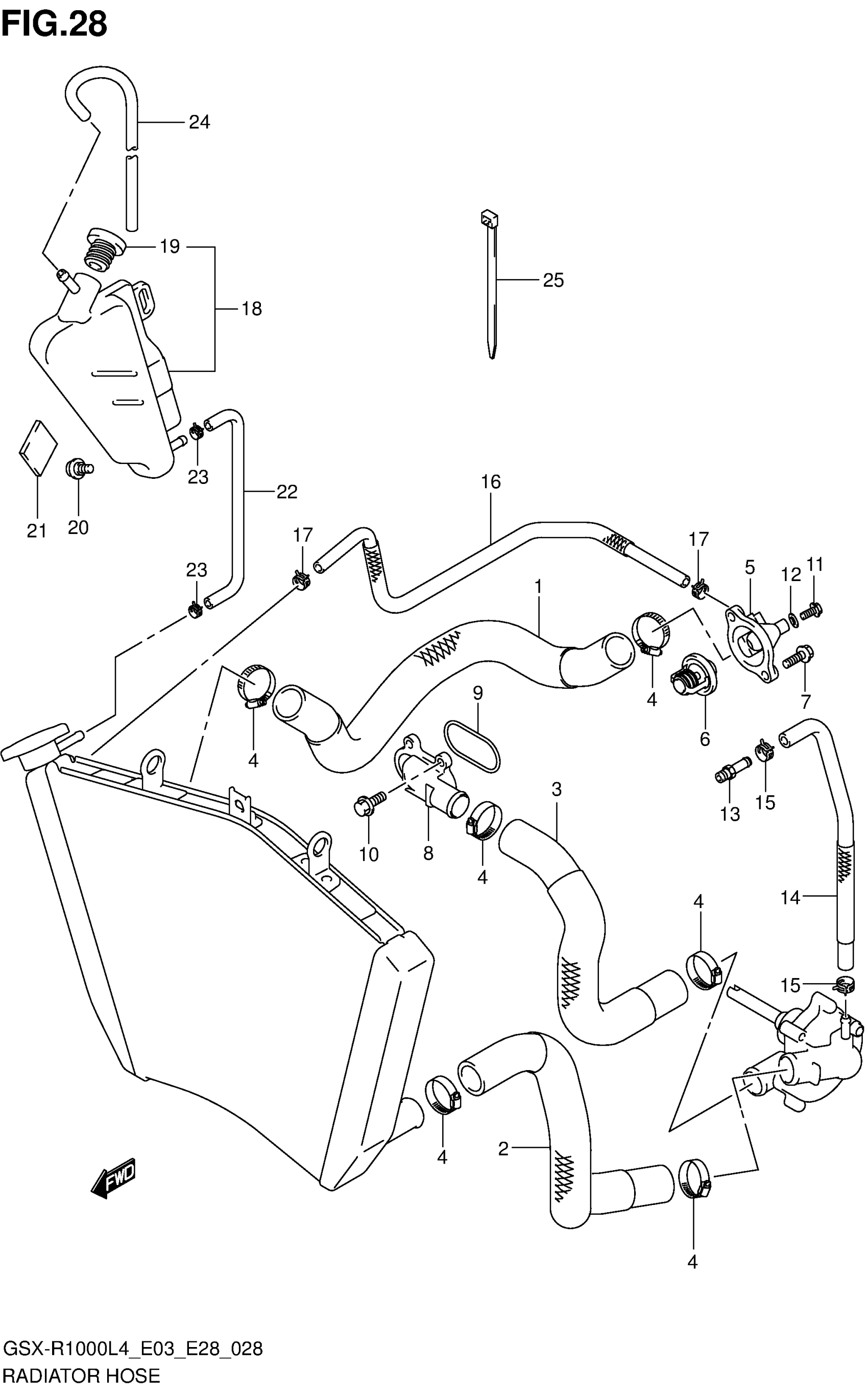 Suzuki GSX-R1000L4 (2014) RADIATOR HOSE Diagram