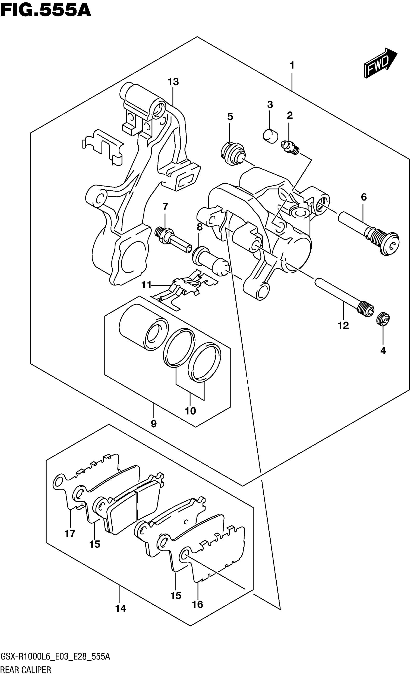 Suzuki GSX-R1000L6 (2016) REAR CALIPER (GSX-R1000L6 E03) Diagram