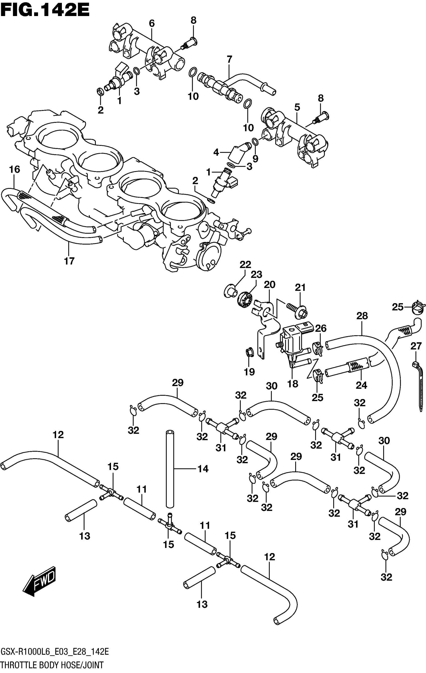 Suzuki GSX-R1000L6 (2016) THROTTLE BODY HOSE/JOINT (GSX-R1000AL6 E33) Diagram