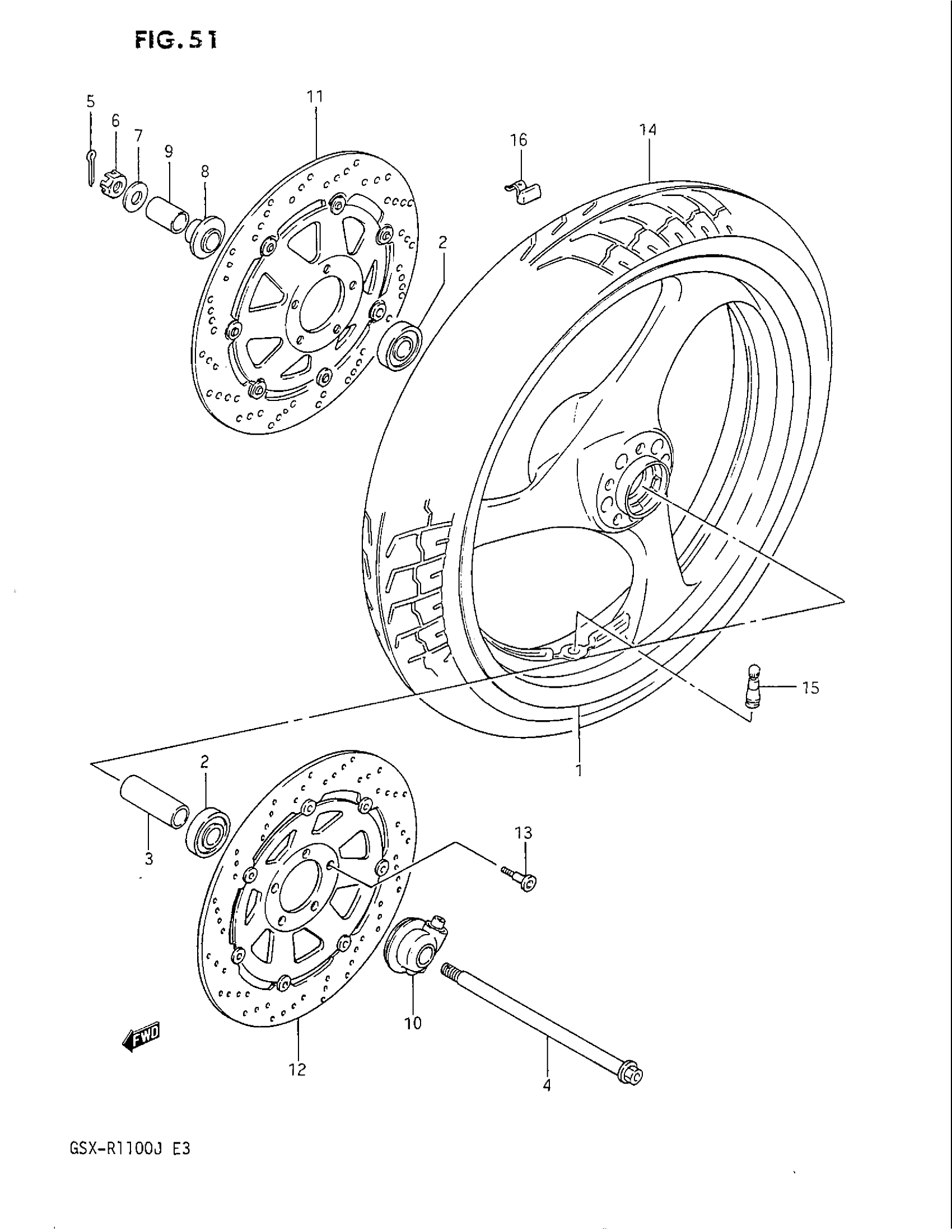 Suzuki GSX-R1100 (1988) FRONT WHEEL (MODEL J) Diagram