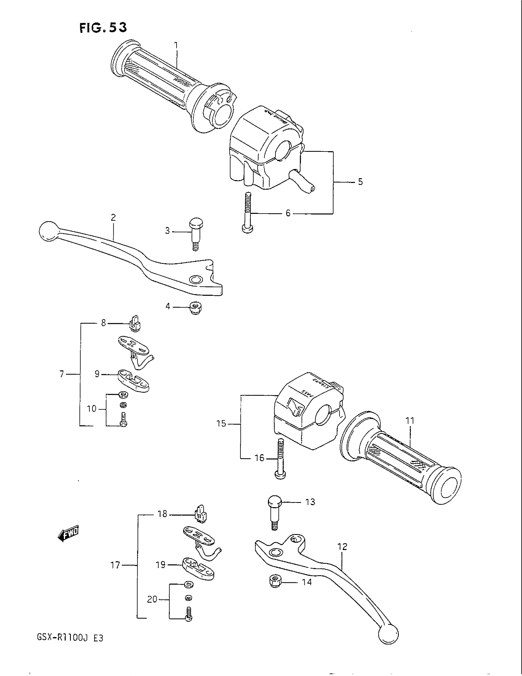 Suzuki GSX-R1100 (1988) HANDLE SWITCH Diagram