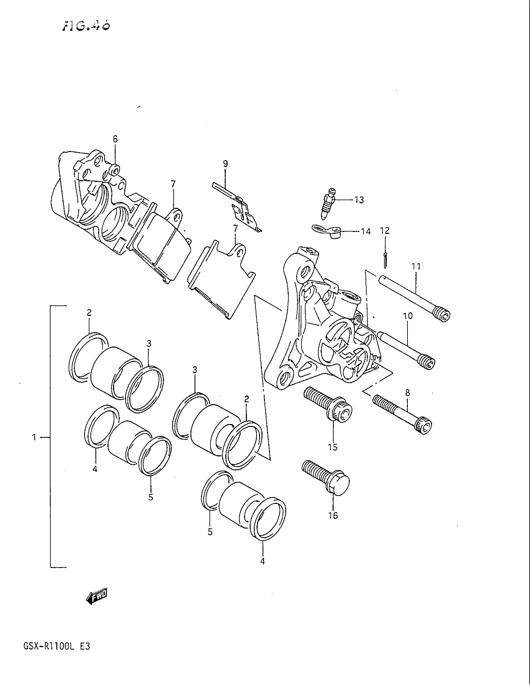 Suzuki GSX-R1100 (1990) FRONT CALIPERS Diagram