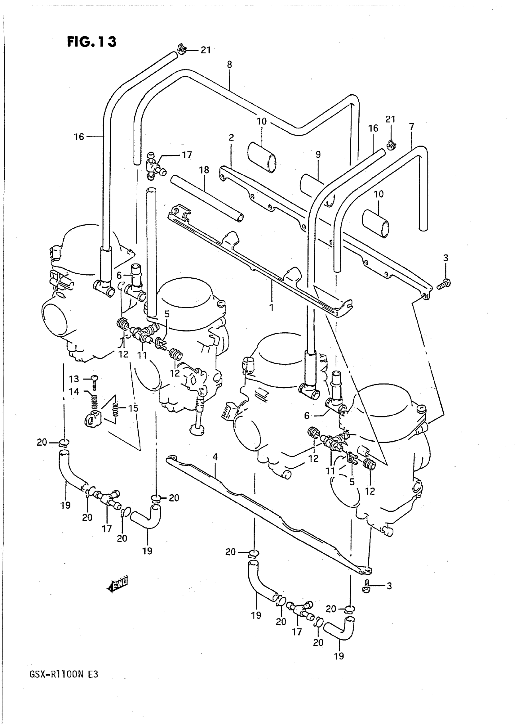 Suzuki GSX-R1100N (1992) CARBURETOR FITTINGS Diagram