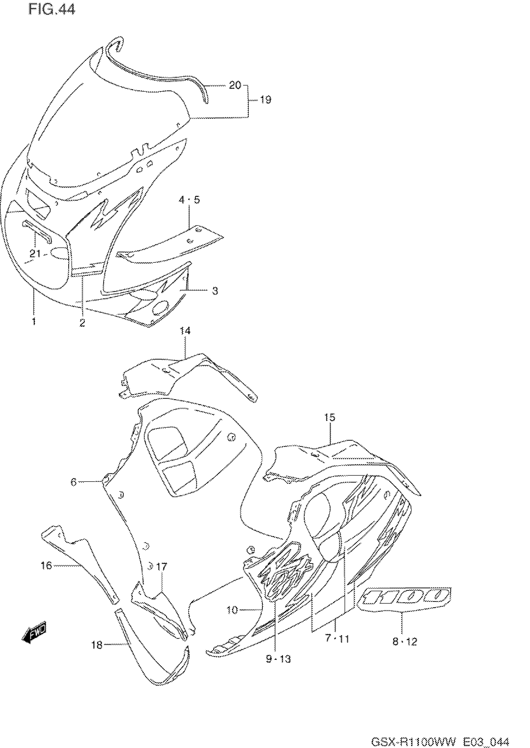 Suzuki GSX-R1100W (1998) COWLING BODY (MODEL P M18) Diagram