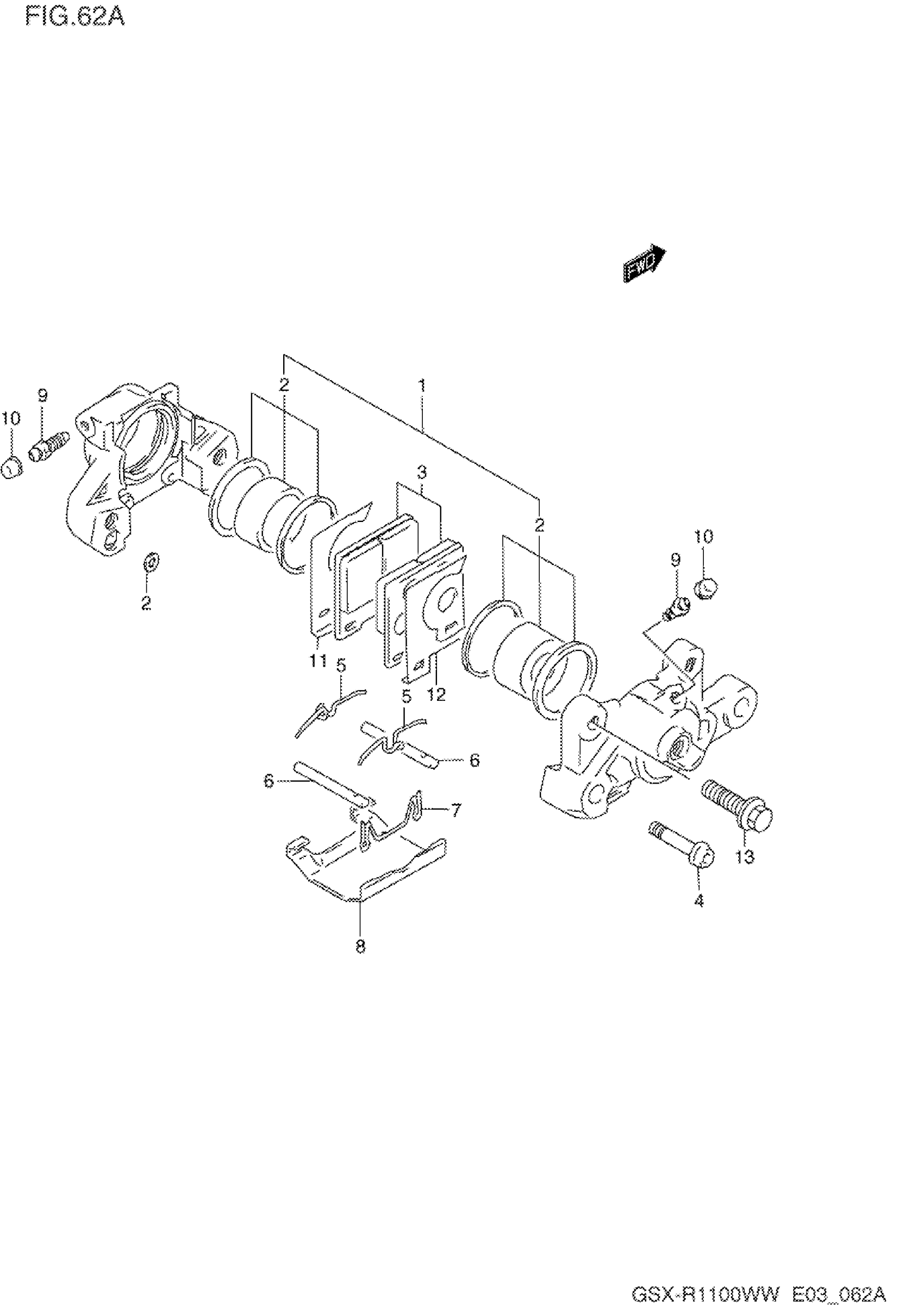 Suzuki GSX-R1100W (1998) REAR CALIPER (MODEL S/T/V/W) Diagram