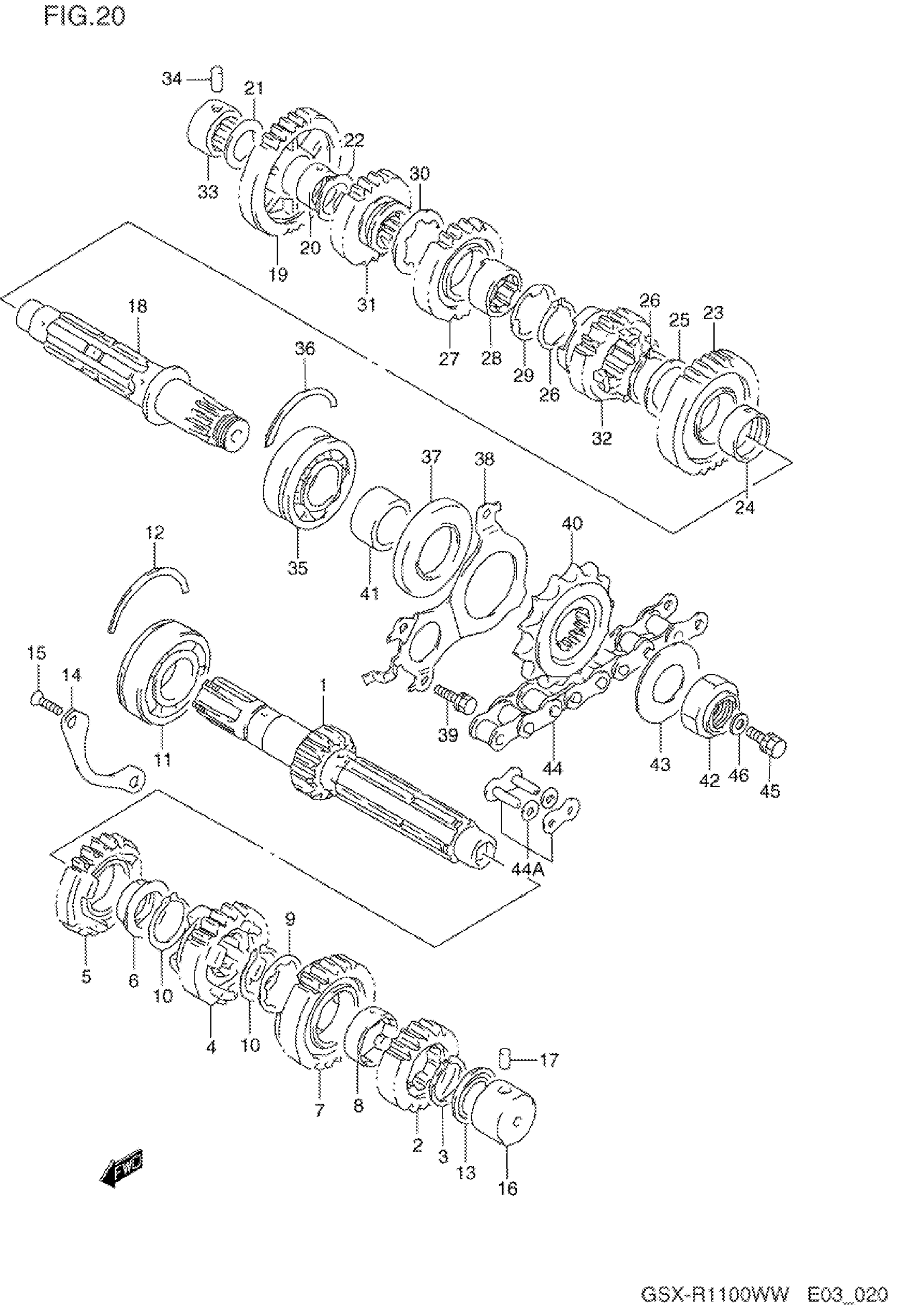 Suzuki GSX-R1100W (1998) TRANSMISSION Diagram