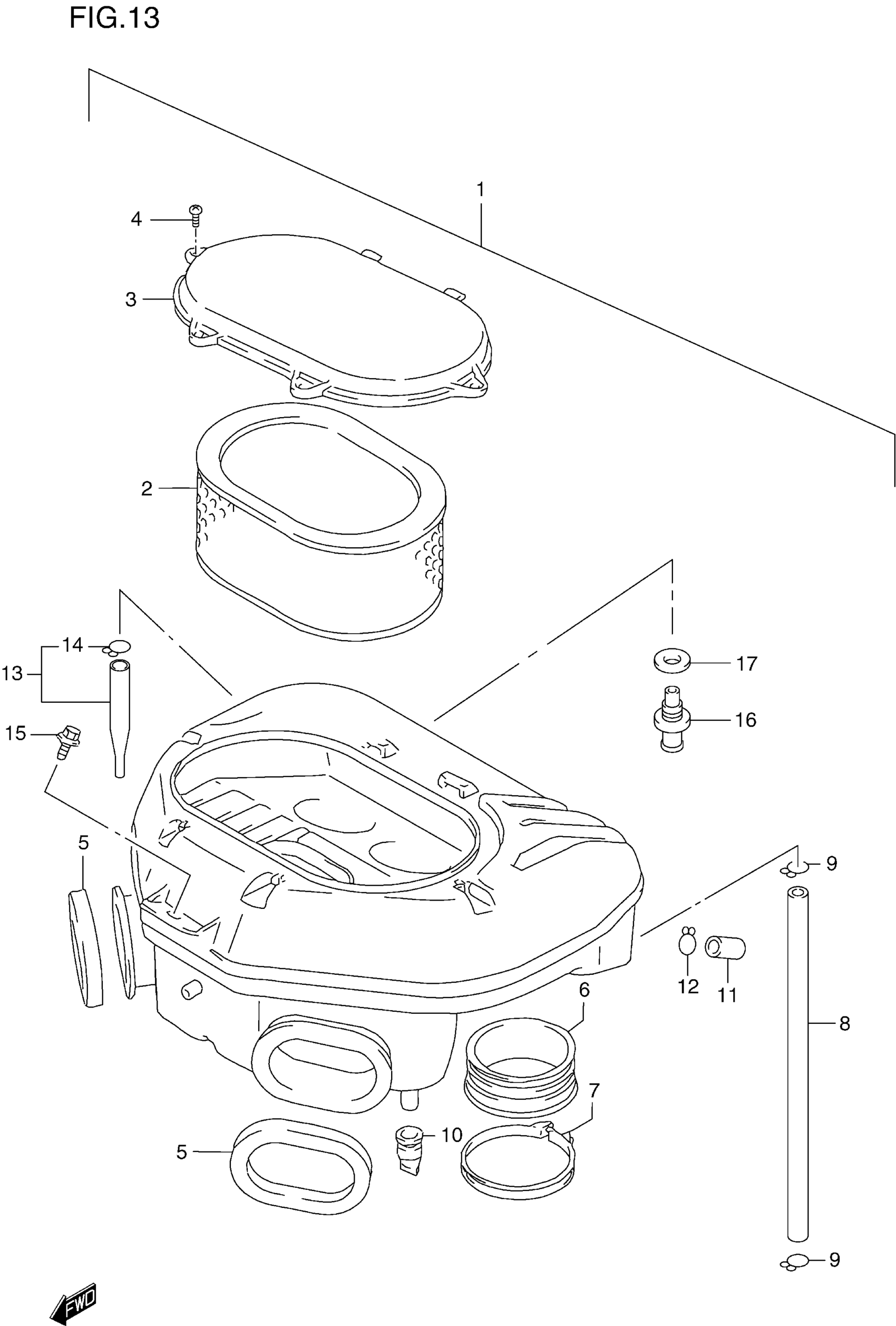 CLEANER ASSY, AIR | MODEL W/X/Y E33; Includes Item(s) 2 - 14