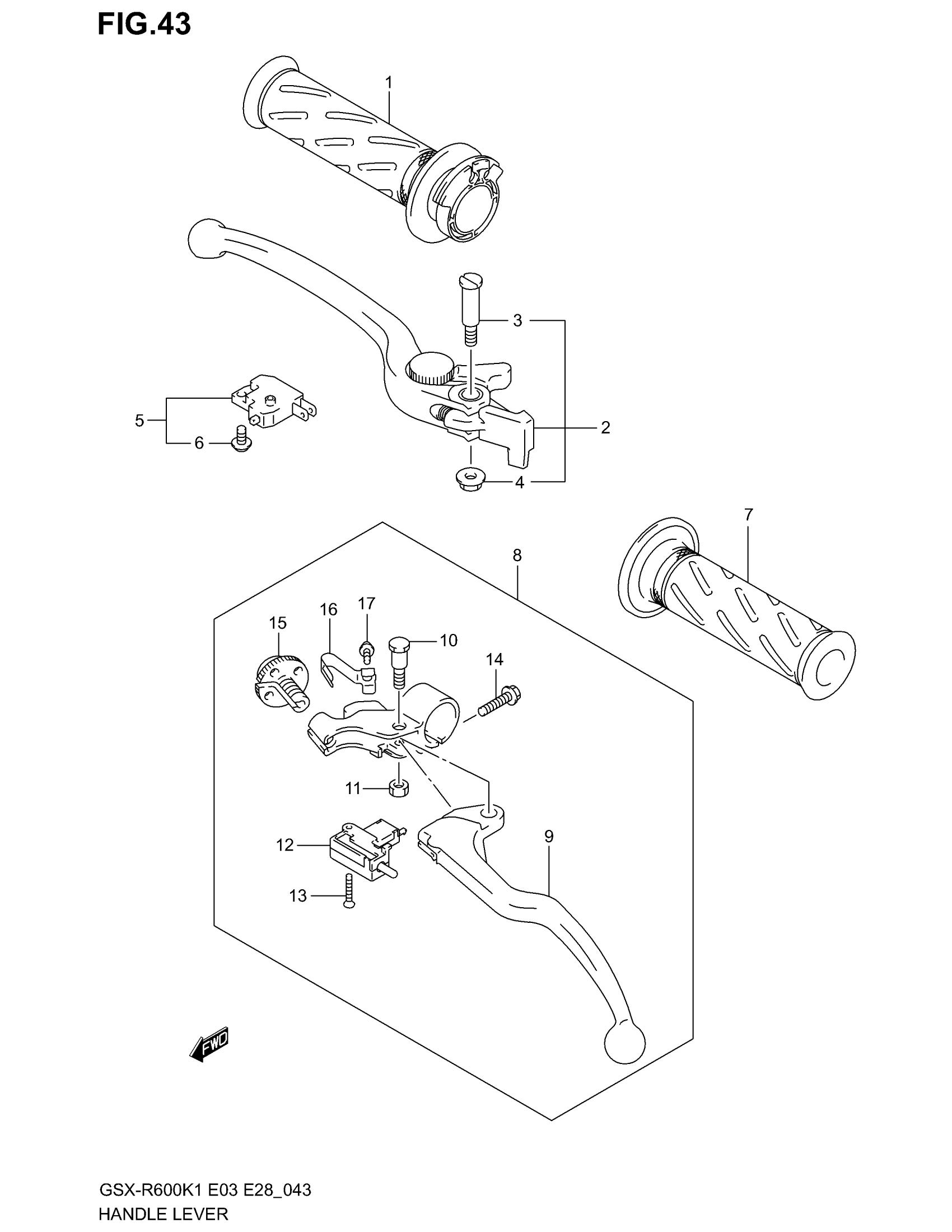 Suzuki GSX-R600 (2003) HANDLE LEVER Diagram