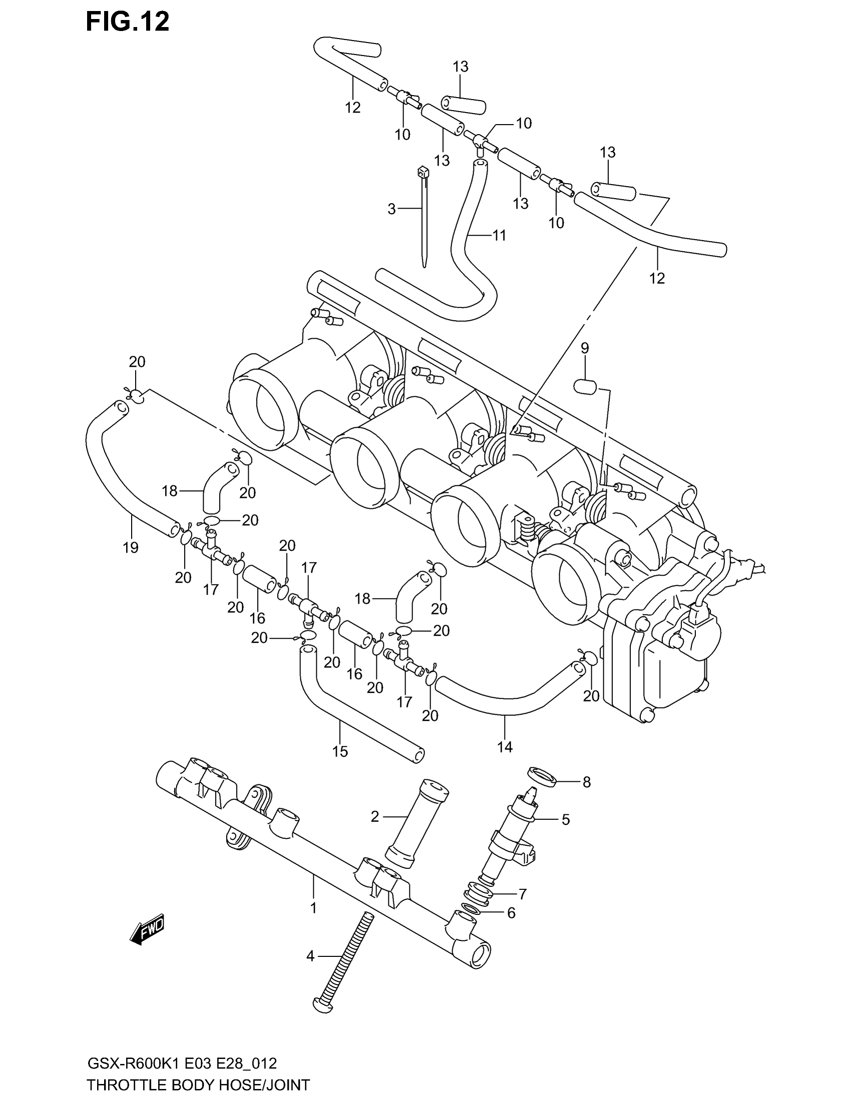 Suzuki GSX-R600 (2003) THROTTLE BODY HOSE/JOINT Diagram