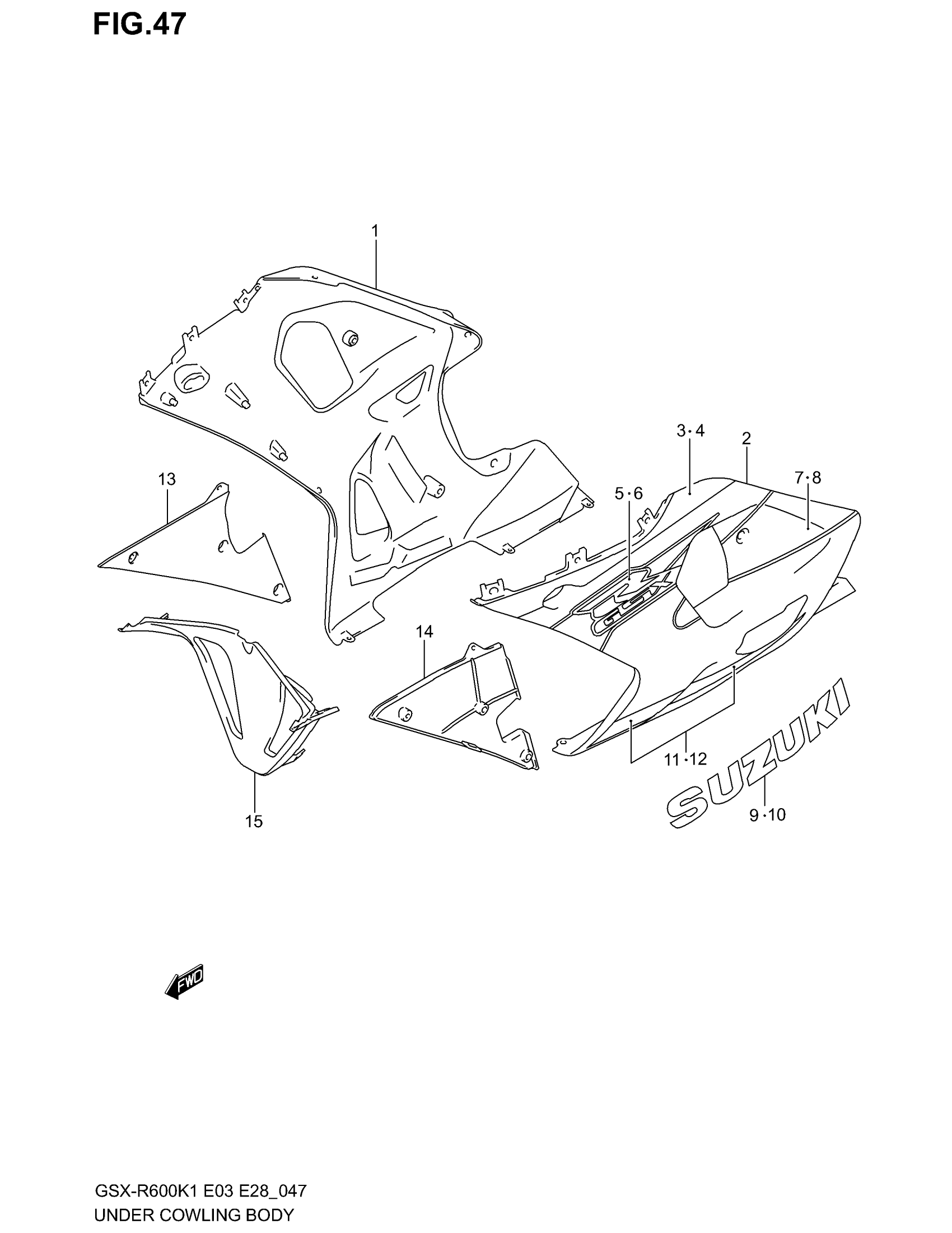 Suzuki GSX-R600 (2003) UNDER COWLING (MODEL K1) Diagram