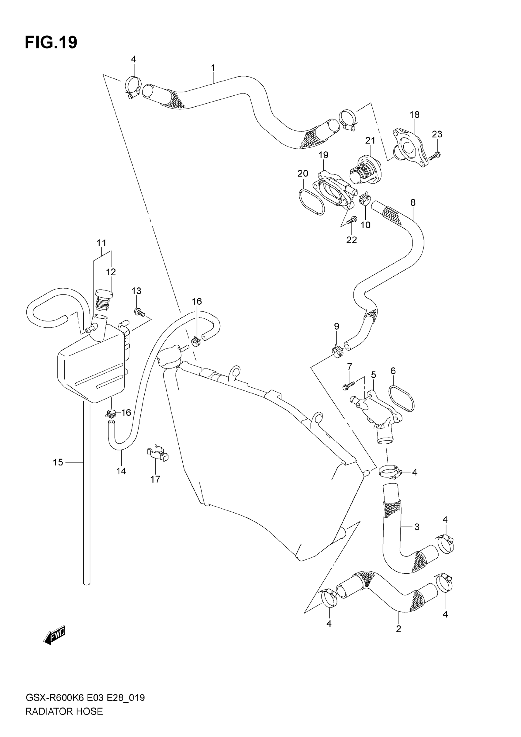 Suzuki GSX-R600 (2007) RADIATOR HOSE Diagram