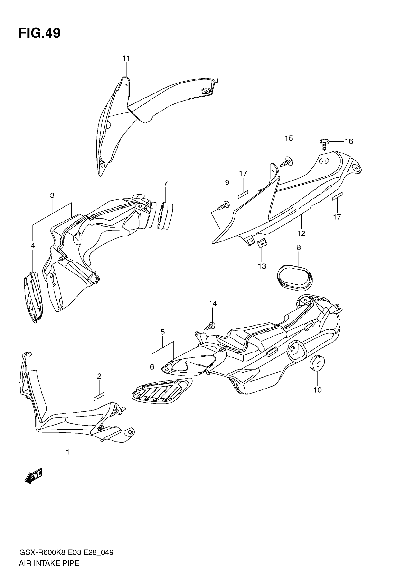 Suzuki GSX-R600 (2009) AIR INTAKE PIPE (MODEL K8) Diagram