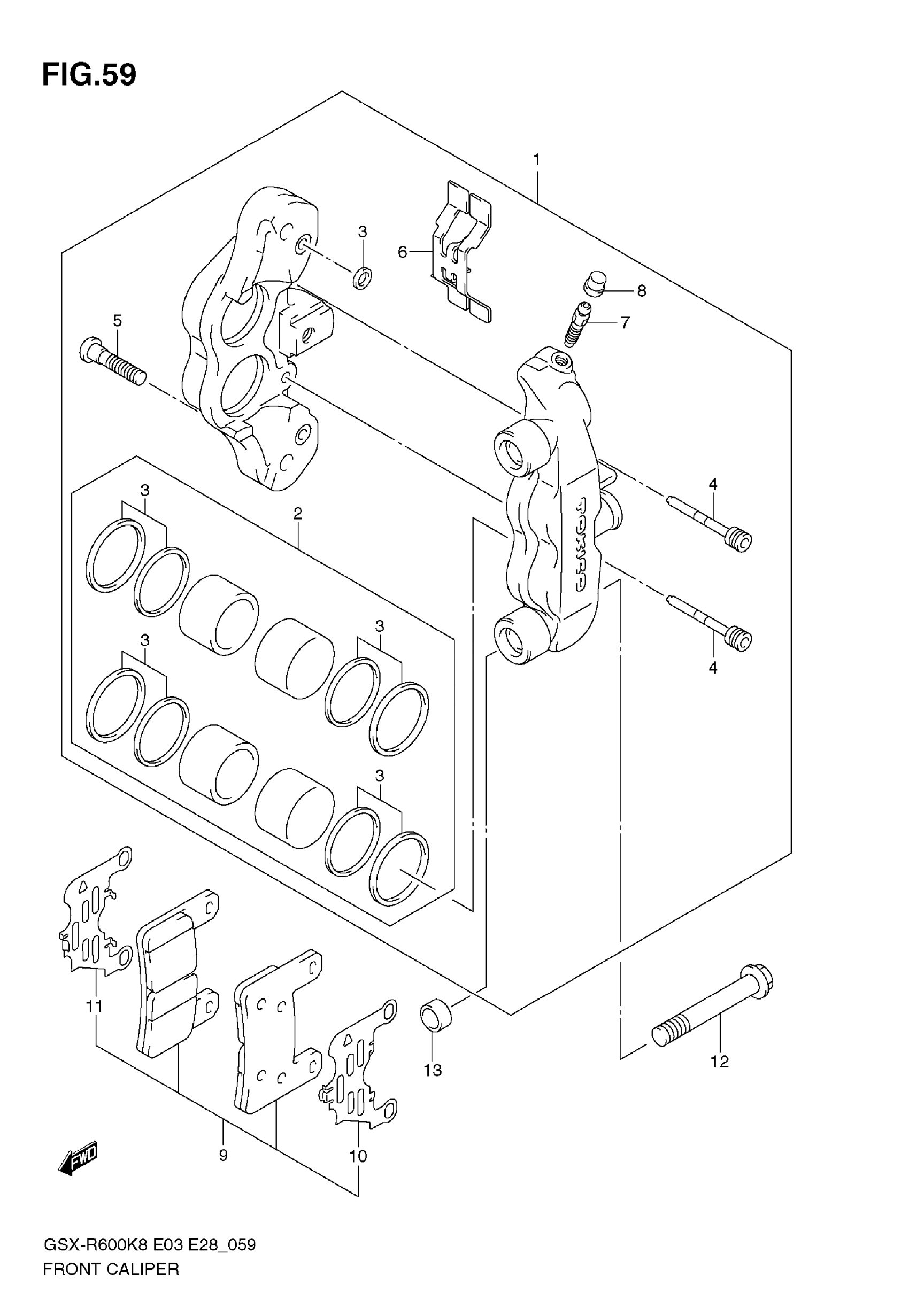 Suzuki GSX-R600 (2009) FRONT CALIPER Diagram
