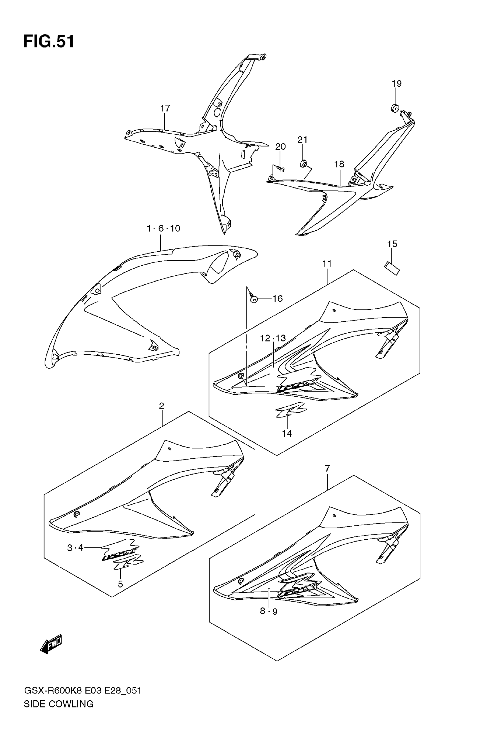 Suzuki GSX-R600 (2009) SIDE COWLING (MODEL K8) Diagram