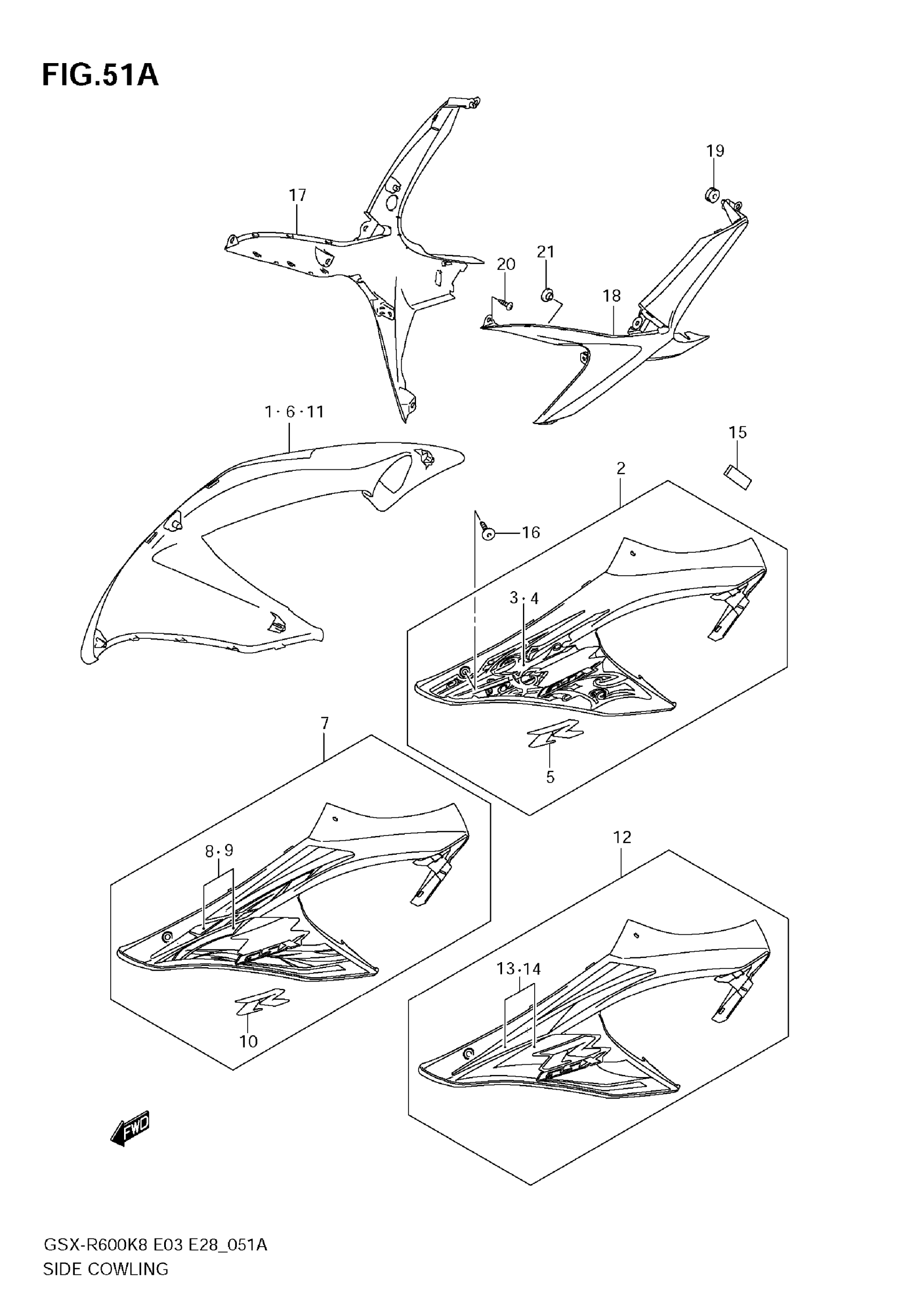 Suzuki GSX-R600 (2009) SIDE COWLING (MODEL K9) Diagram