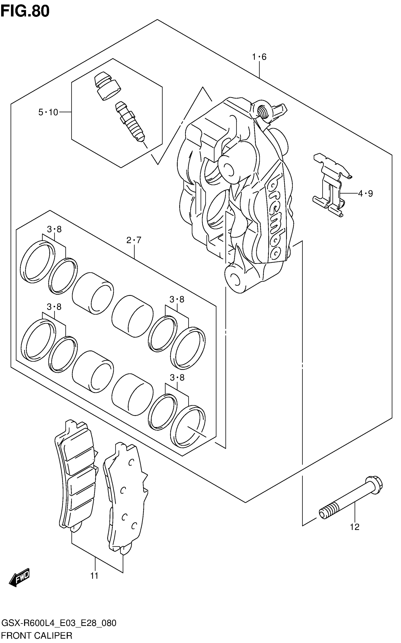 Suzuki GSX-R600L4 (2014) FRONT CALIPER Diagram