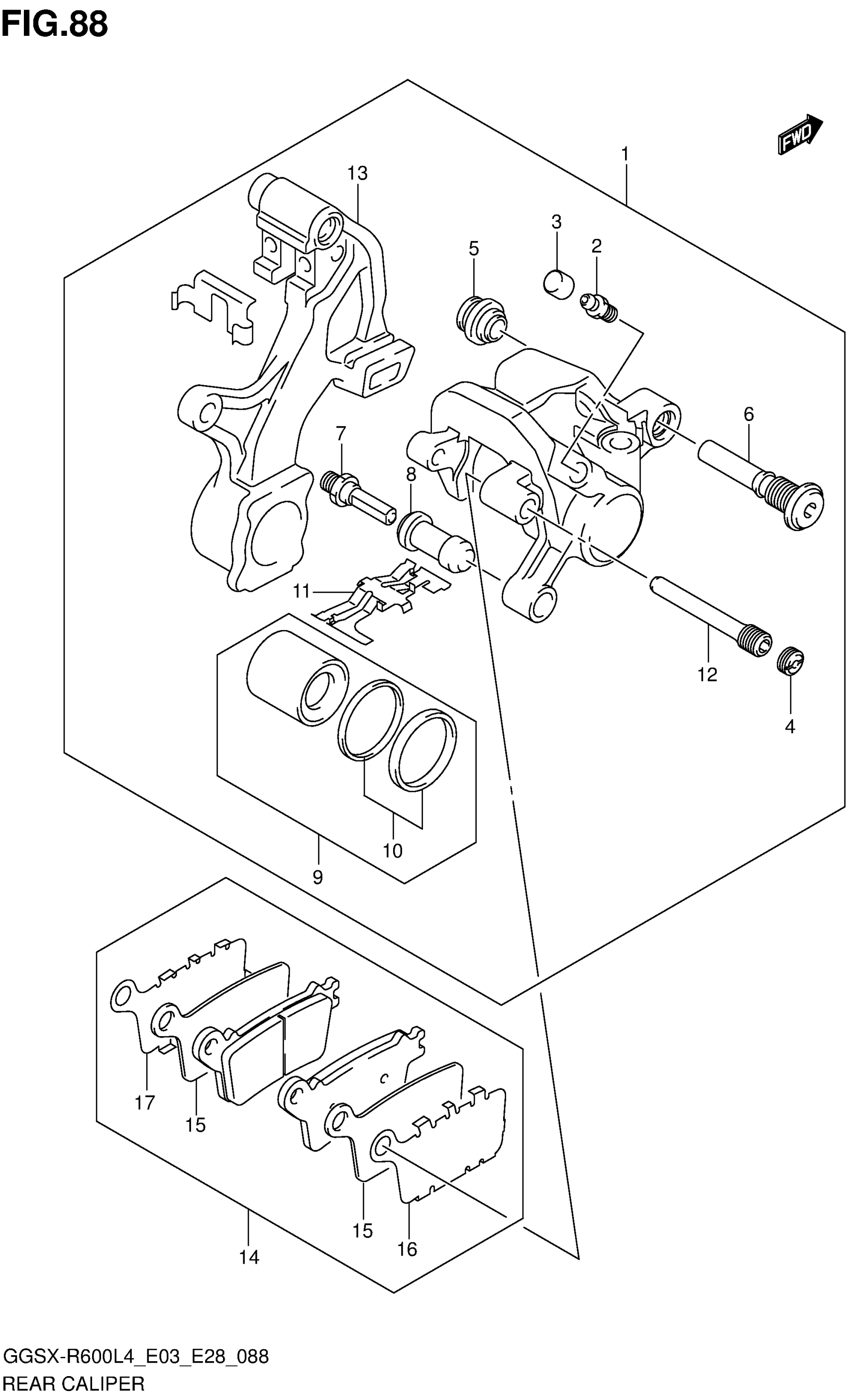 Suzuki GSX-R600L4 (2014) REAR CALIPER Diagram