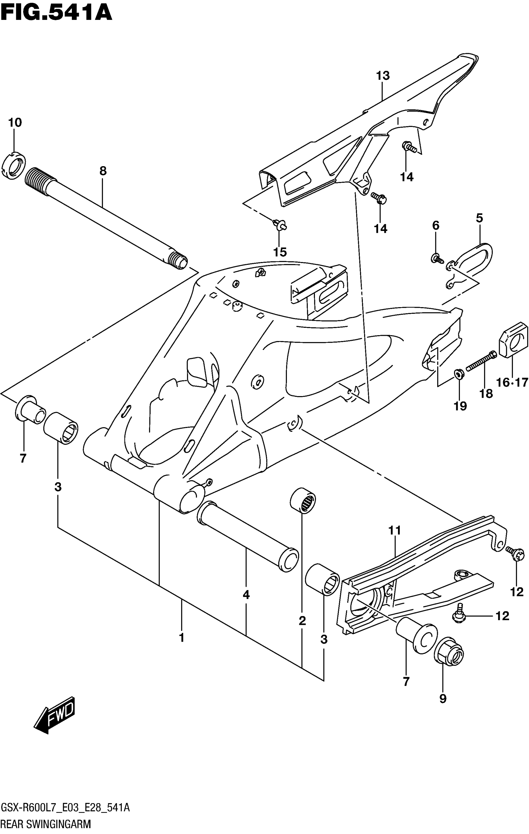 Suzuki GSX-R600L7 (2017) REAR SWINGINGARM Diagram