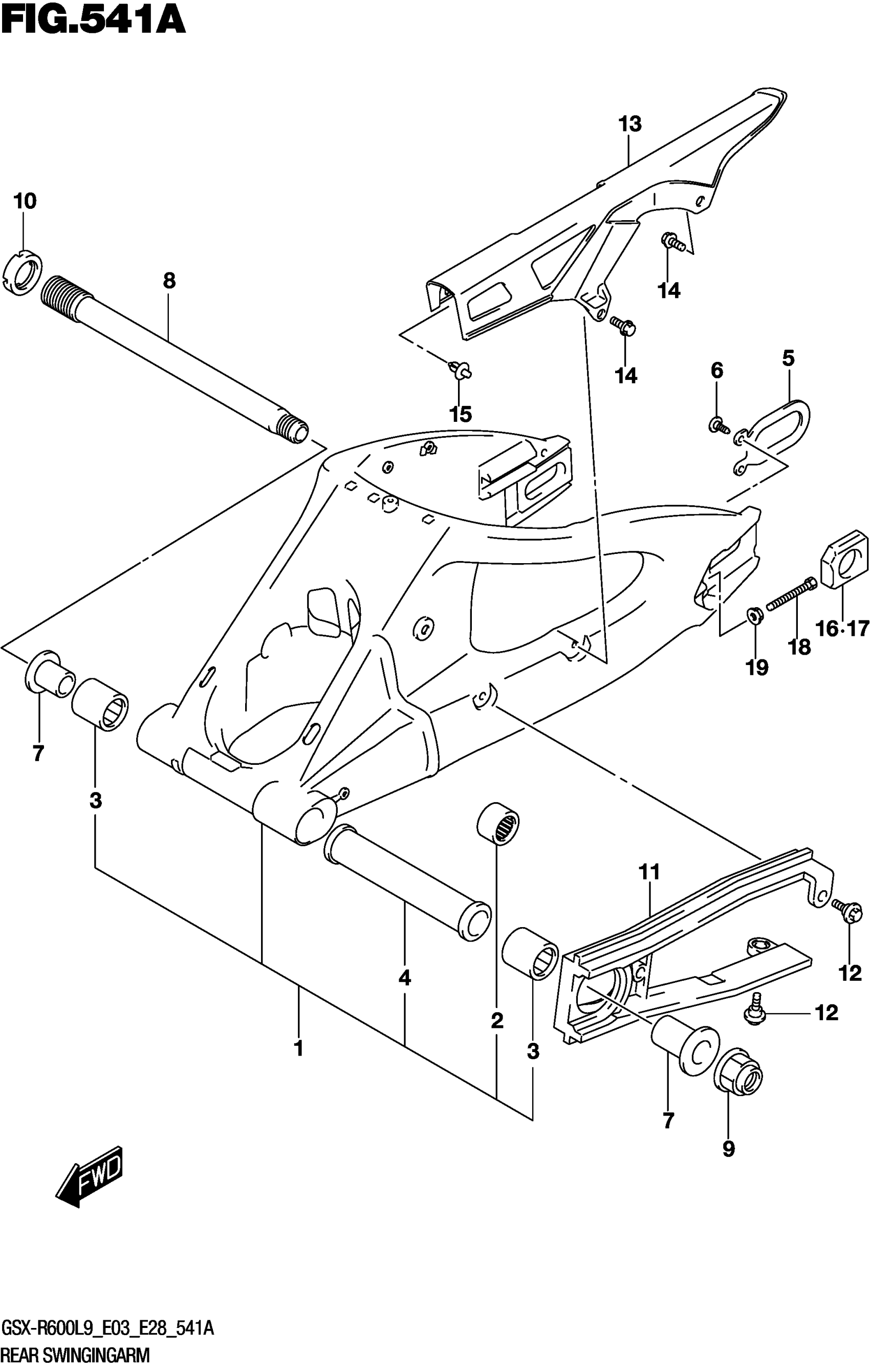 Suzuki GSX-R600L9 (2019) REAR SWINGINGARM Diagram