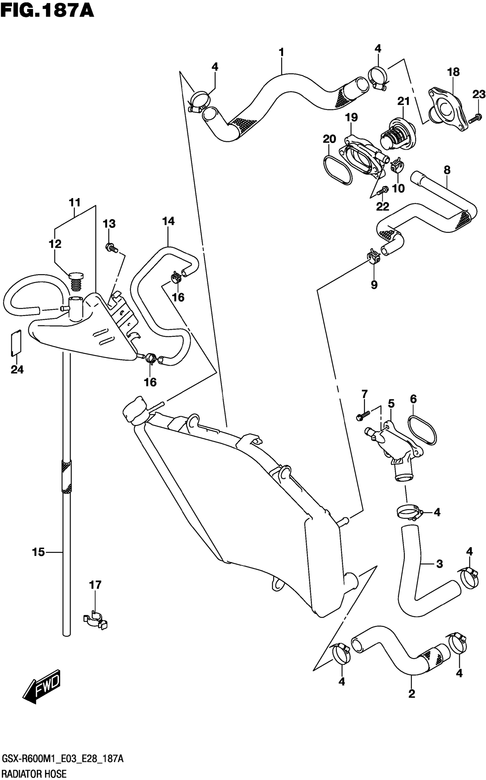 Suzuki GSX-R600M1 (2021) RADIATOR HOSE Diagram